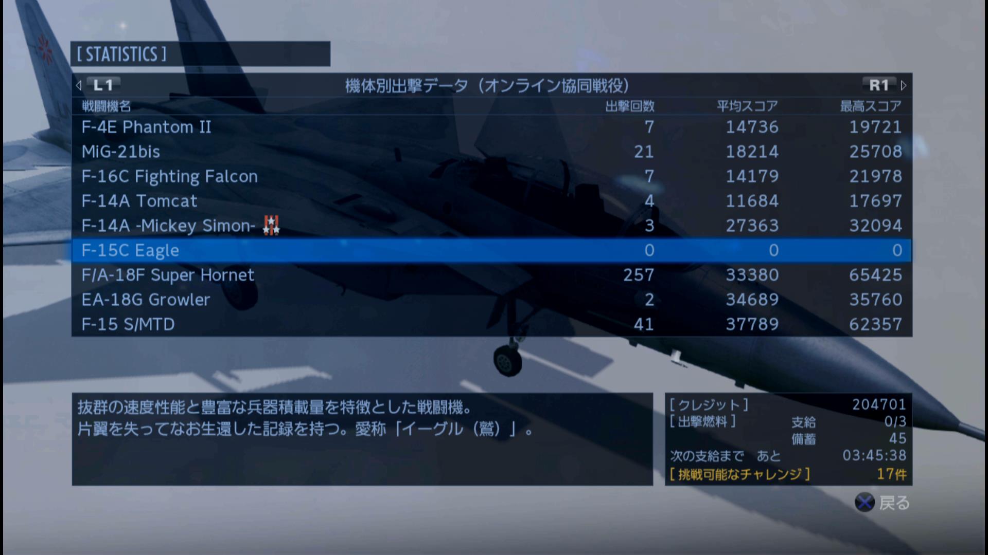 【対空】F-15 S/MTD Agile Eagle, Lv.6 & LAGM, Lv.3, TtlCst:1455 - 開始燃料:支給燃料3,備蓄燃料45