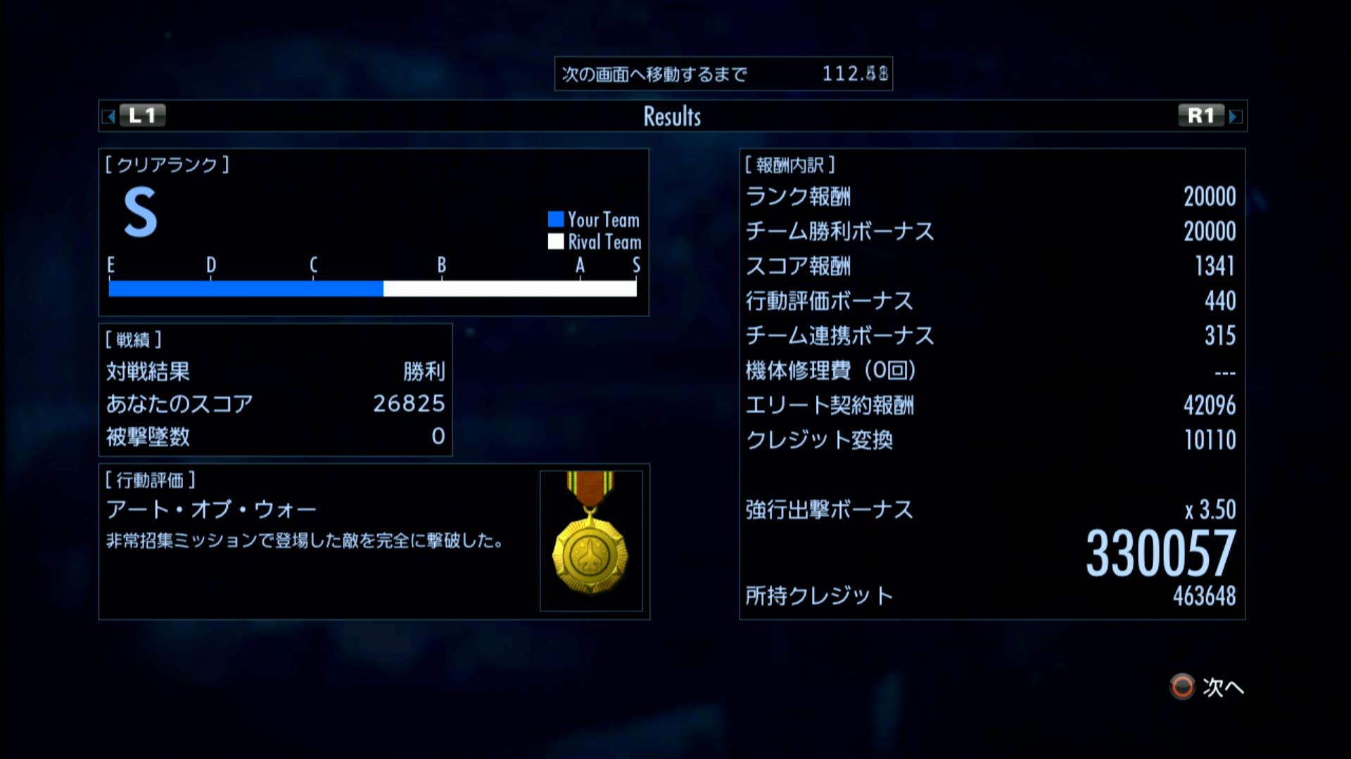 Aランククリアだったがクレジット変換にエリート傭兵契約効果で24624クレジットゲット