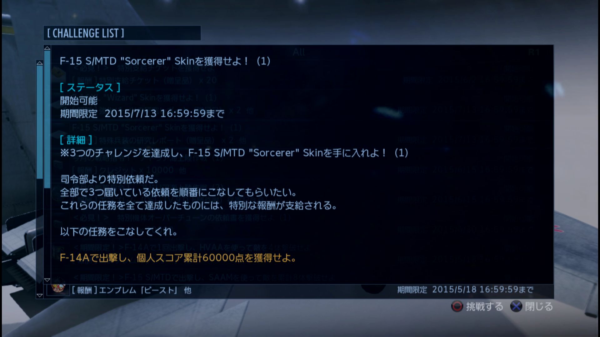 (1)は、F-14A(特別機OK)で60000点だ