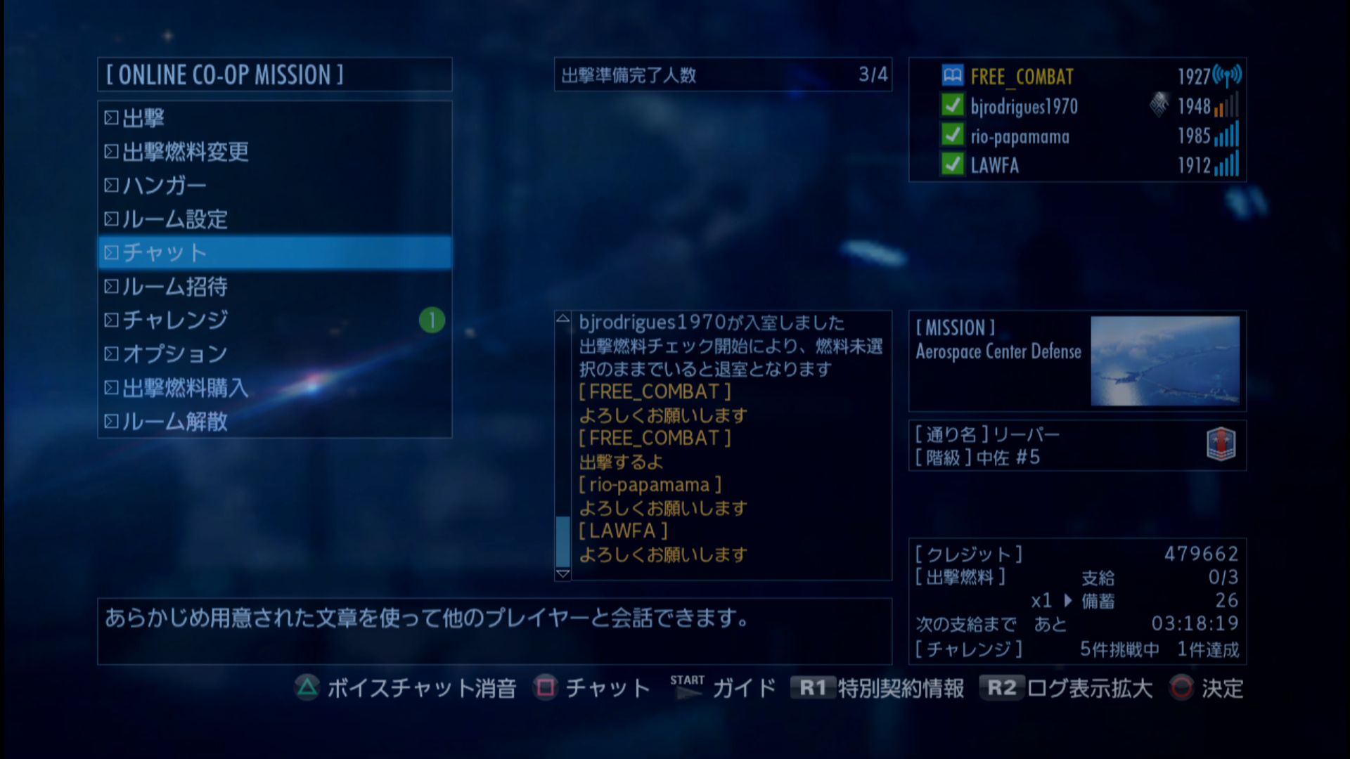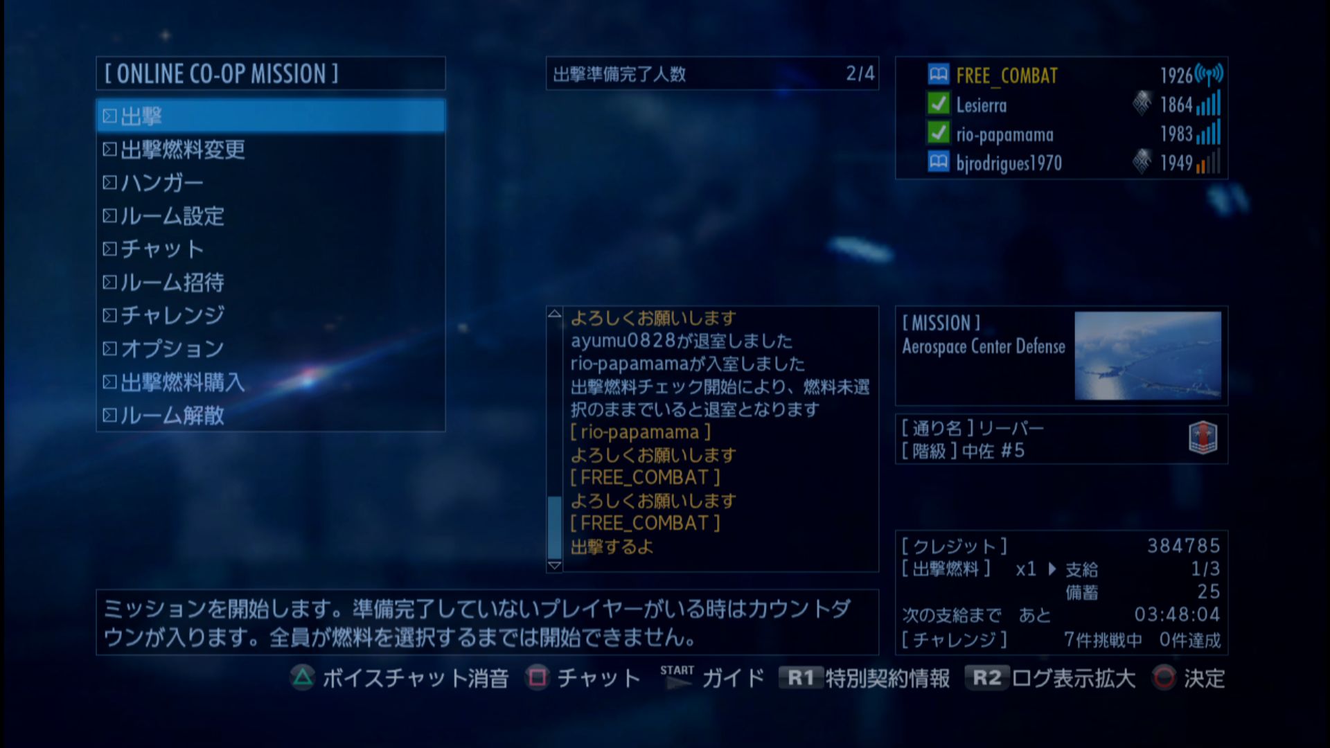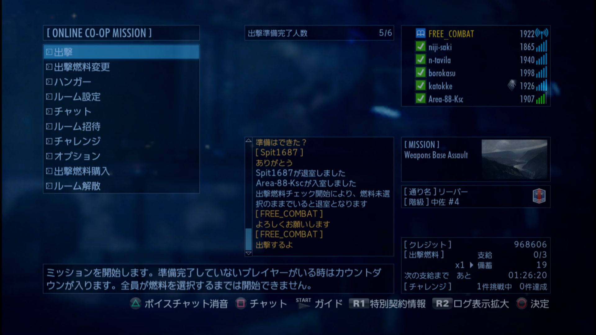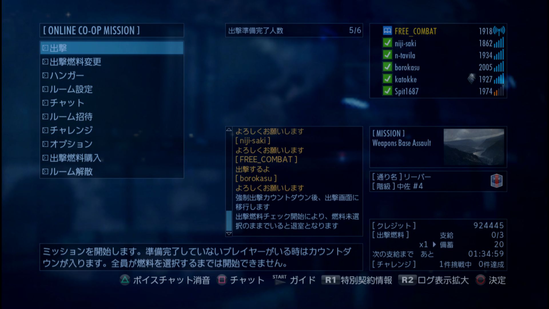 - 累計出撃回数:1049(協同戦役ミッション)