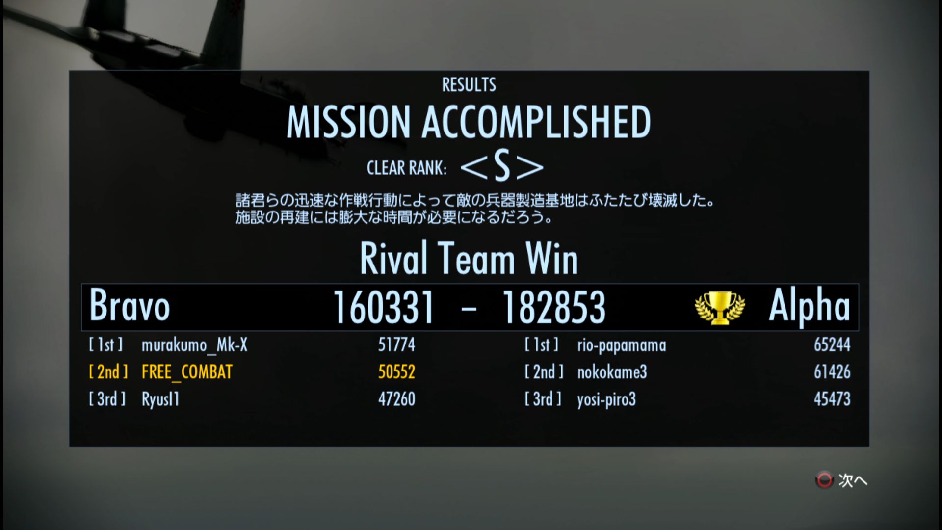 - 終了マッチングレート協同戦役:1934↑