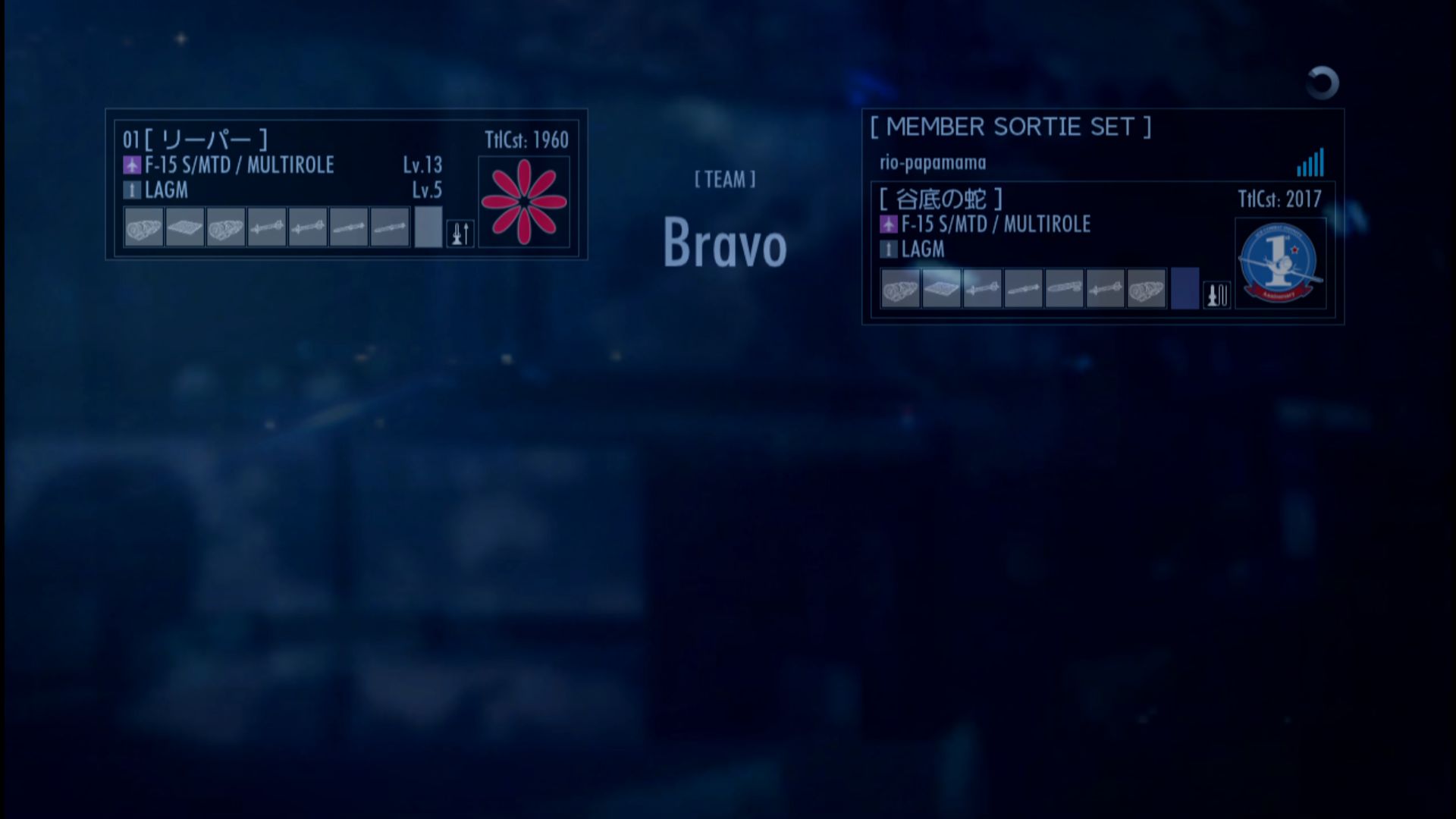 (2015/4/4, EMERGENCY SEA STRIKE, F-15 S/MTD Agile Eagle, Lv.11 & LAGM, Lv.5, TtlCst:1786) - 今回出撃回数:31(協同戦役:31)