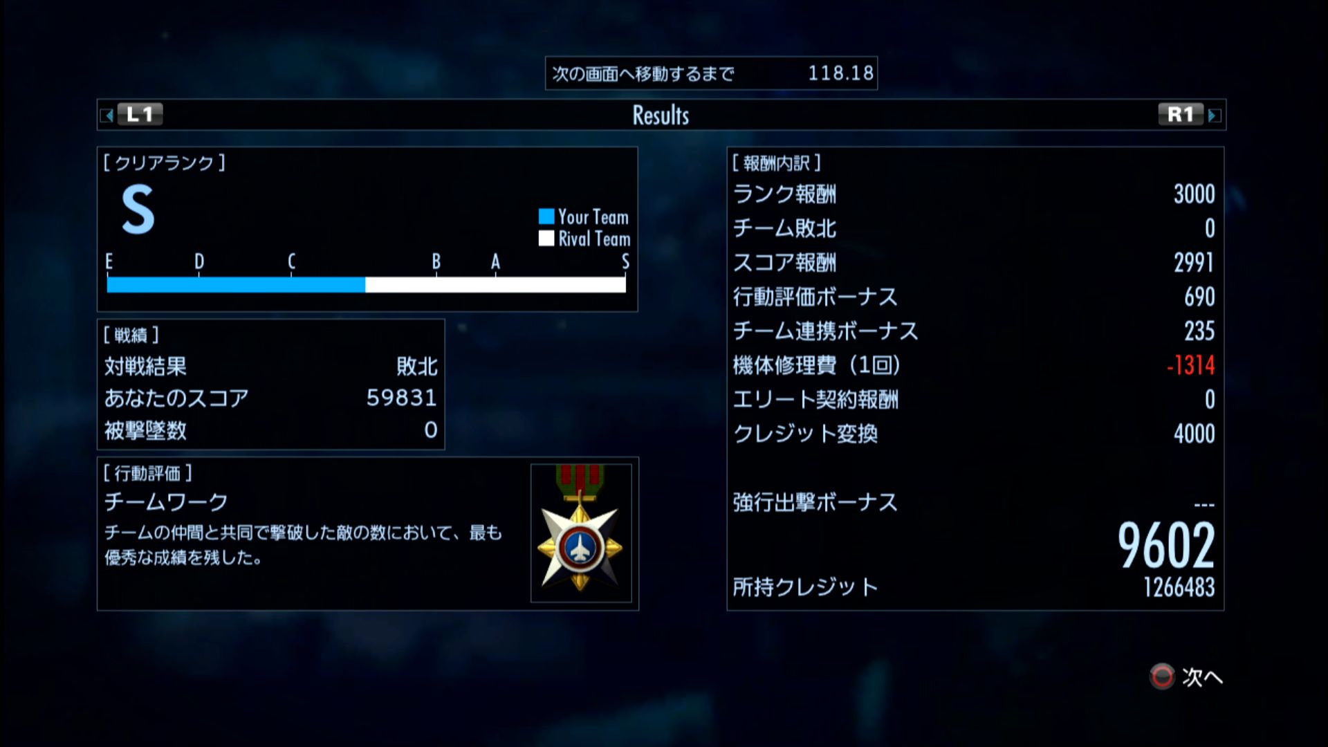 あとで気づいたんだが、支給終了で終了するつもりでいて、なぜかこれが3回目の出撃と勘違いしてたようだ。しかしなんの疑問もなく備蓄で出撃してるしー。さっきのスコアの悪さに気が動転してるのか(^^;