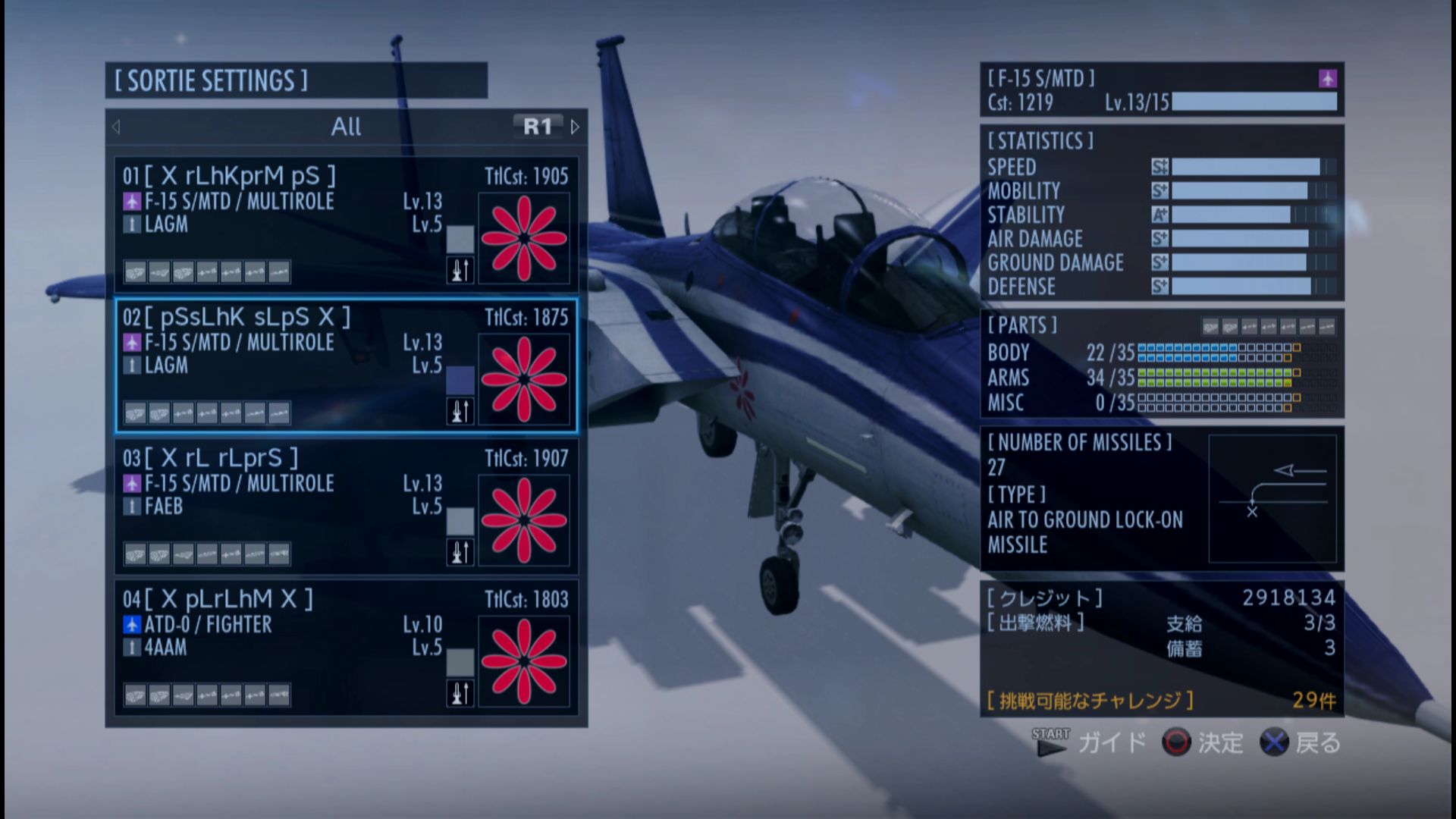 【マルチLp】F-15 S/MTD Agile Eagle, Lv.13 & LAGM, Lv.5,TtlCst:1875 [X pSsLhK pSsL]