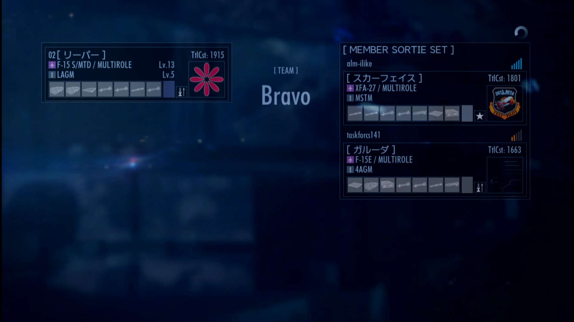 (2015/4/4, EMERGENCY SEA STRIKE, F-15 S/MTD Agile Eagle, Lv.11 & LAGM, Lv.5, TtlCst:1786) - 今回出撃回数:3(協同戦役:3)