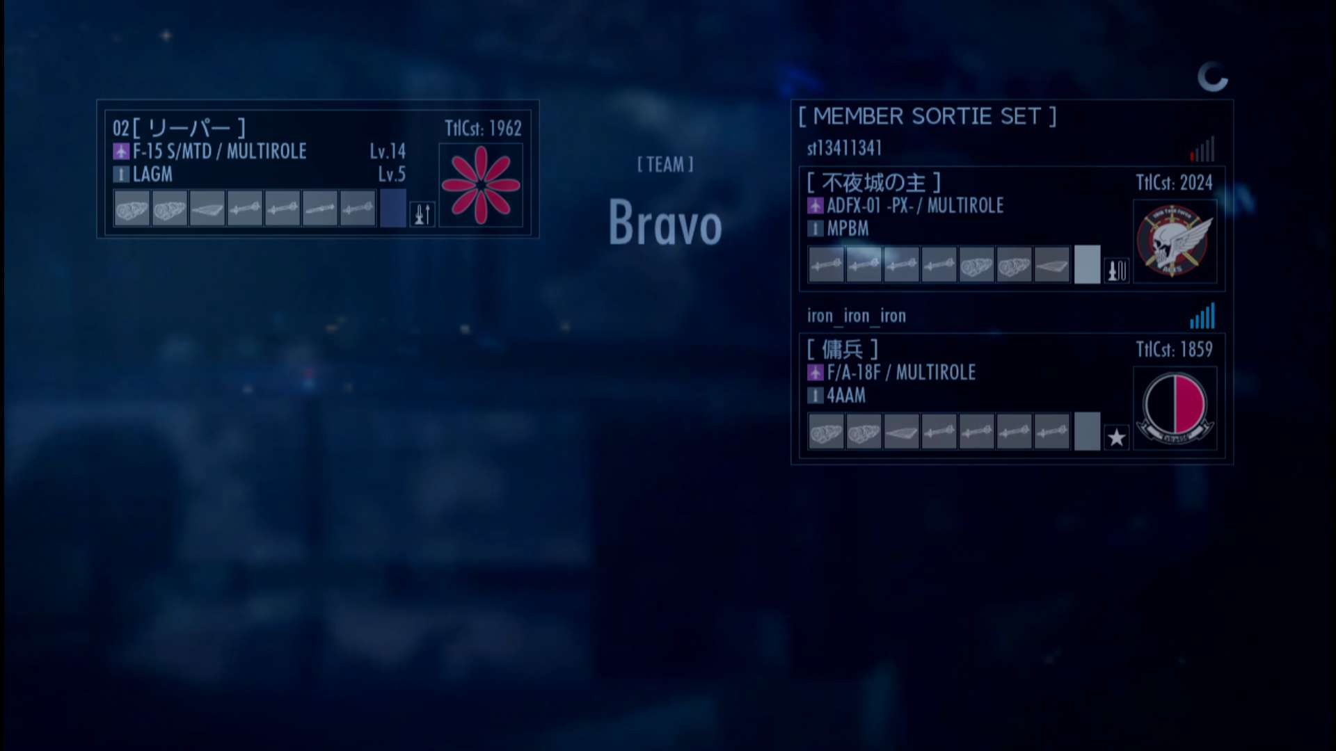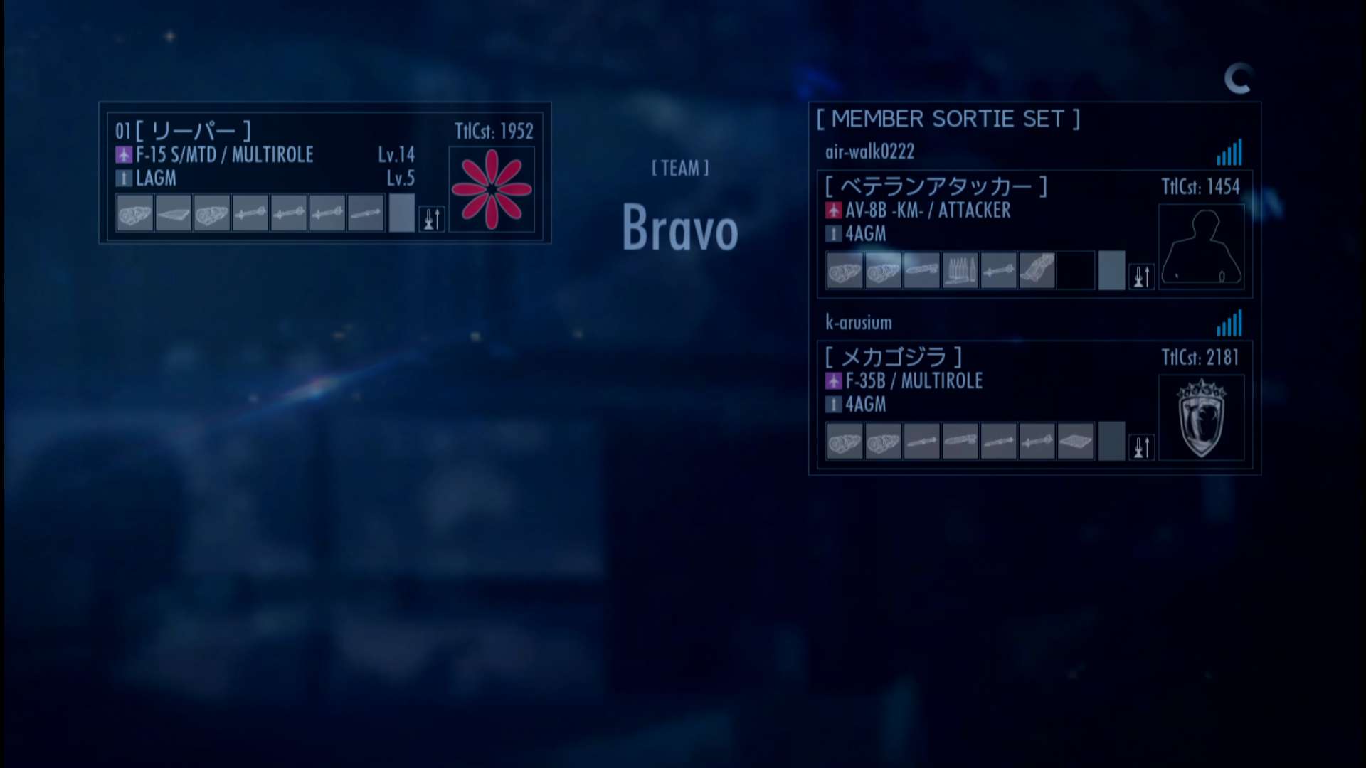 - 累計出撃回数:1269(協同戦役ミッション)