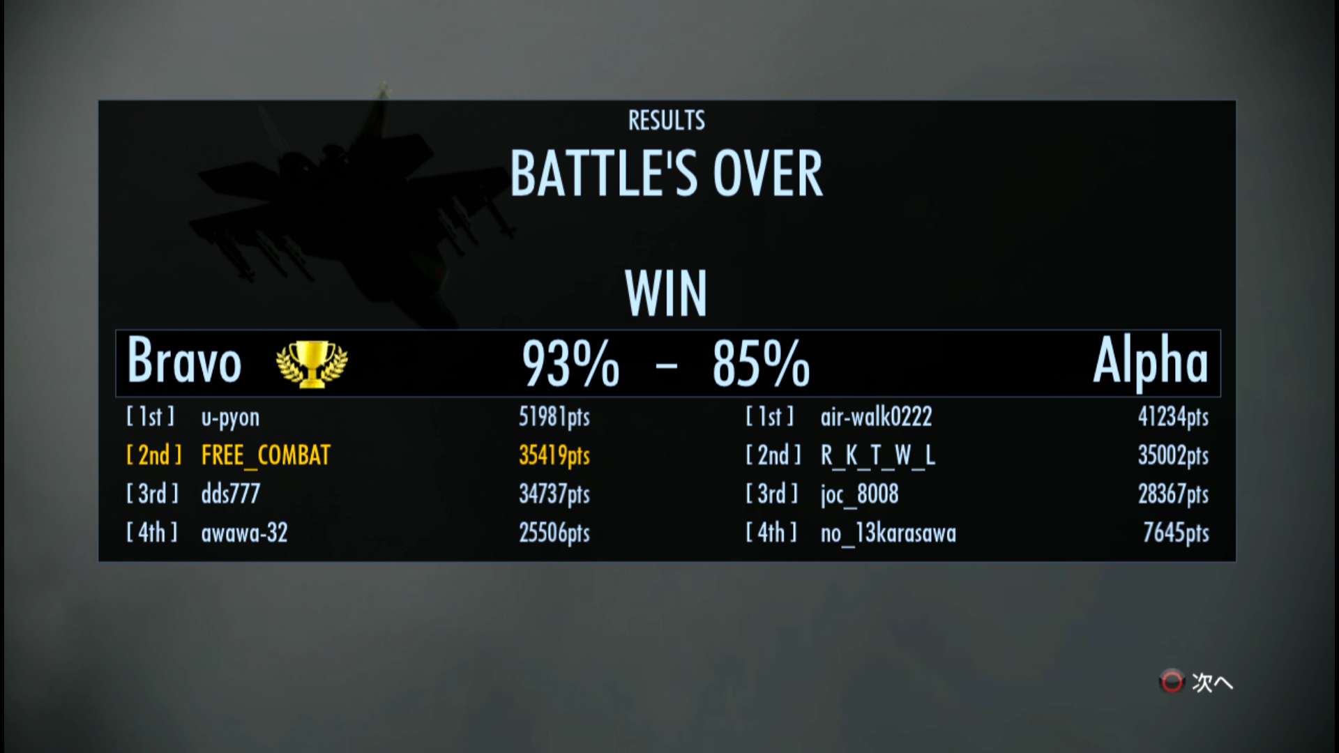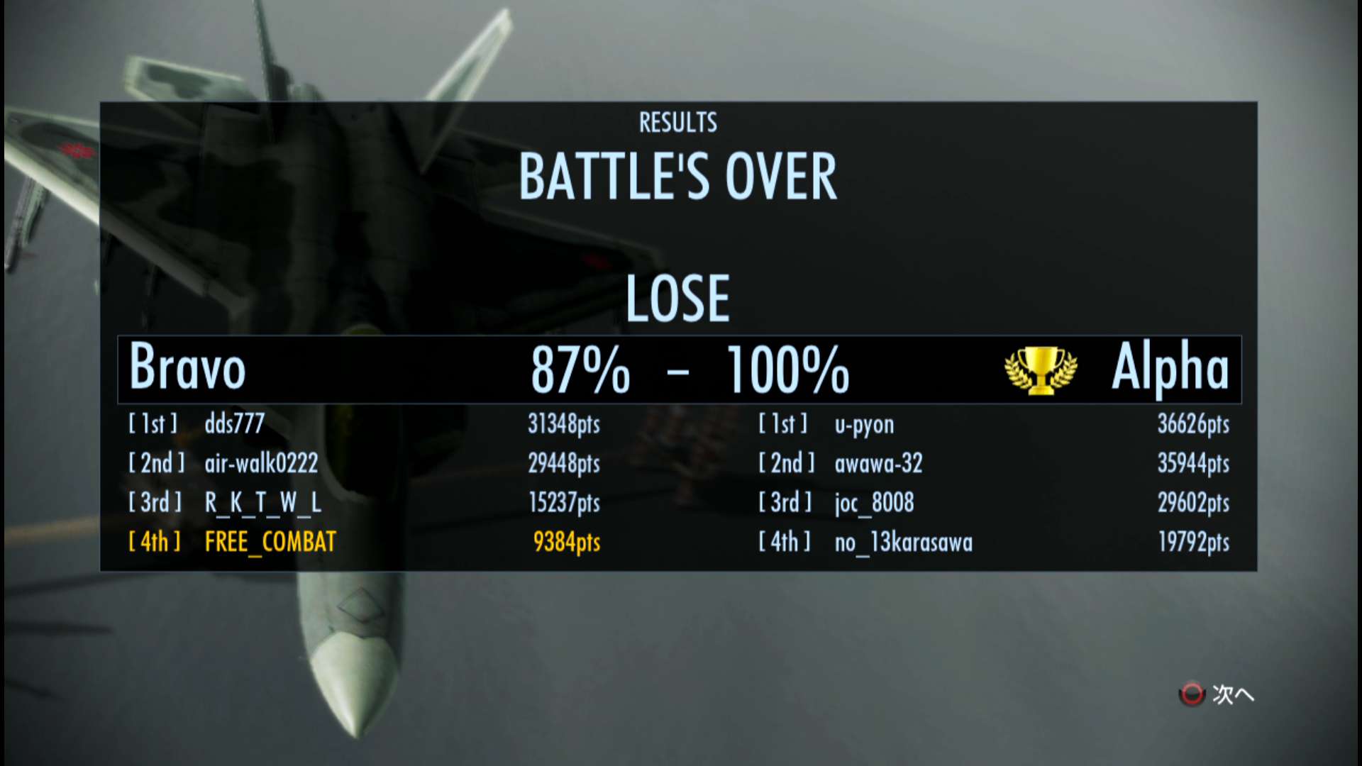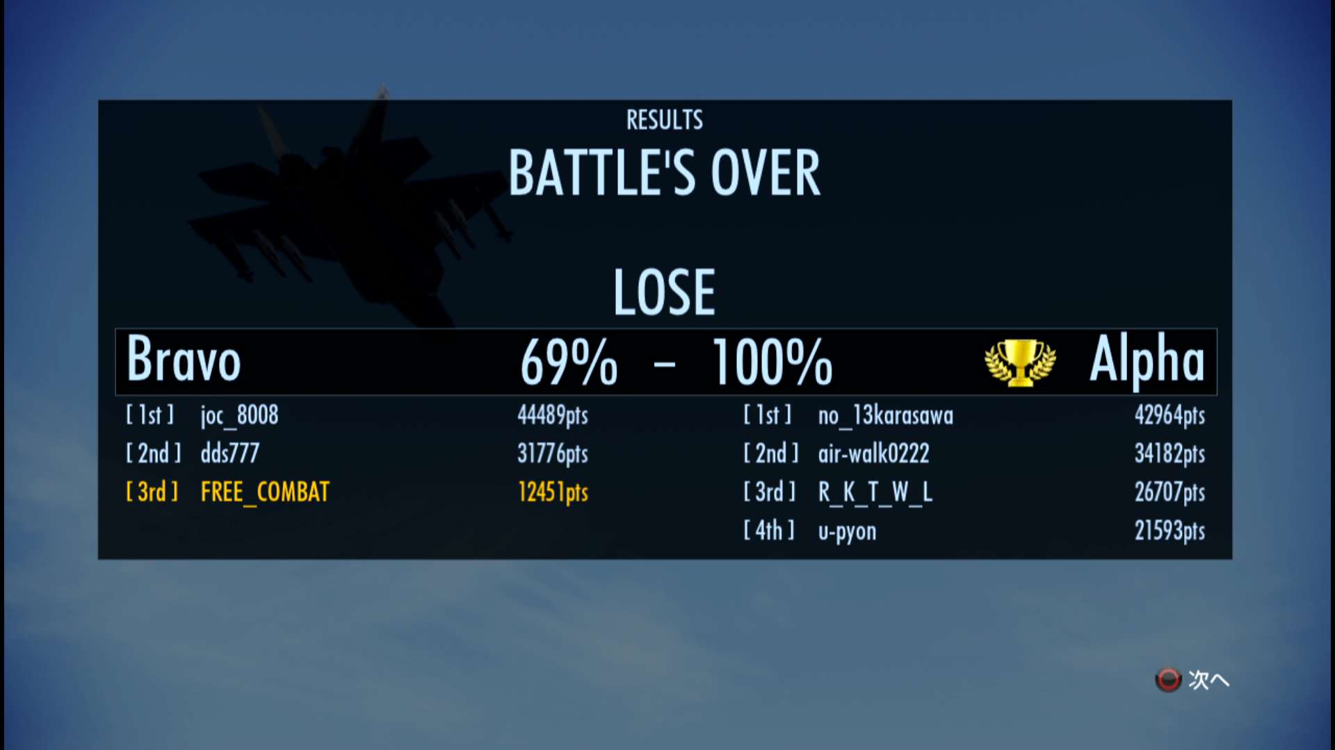 12451pts < うぐぐ、いやー6回も落とされて、落としたのが3。特にミラージュのair-walkが当たらない当たらい。そればかりか逆に落とされてるしorz