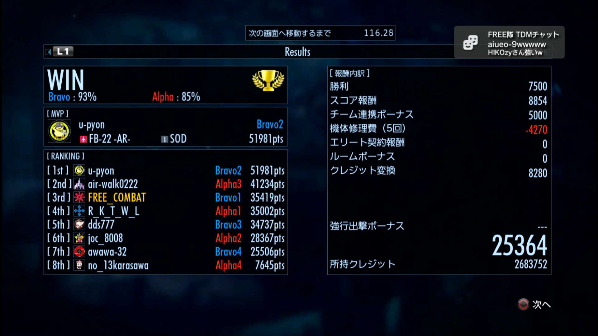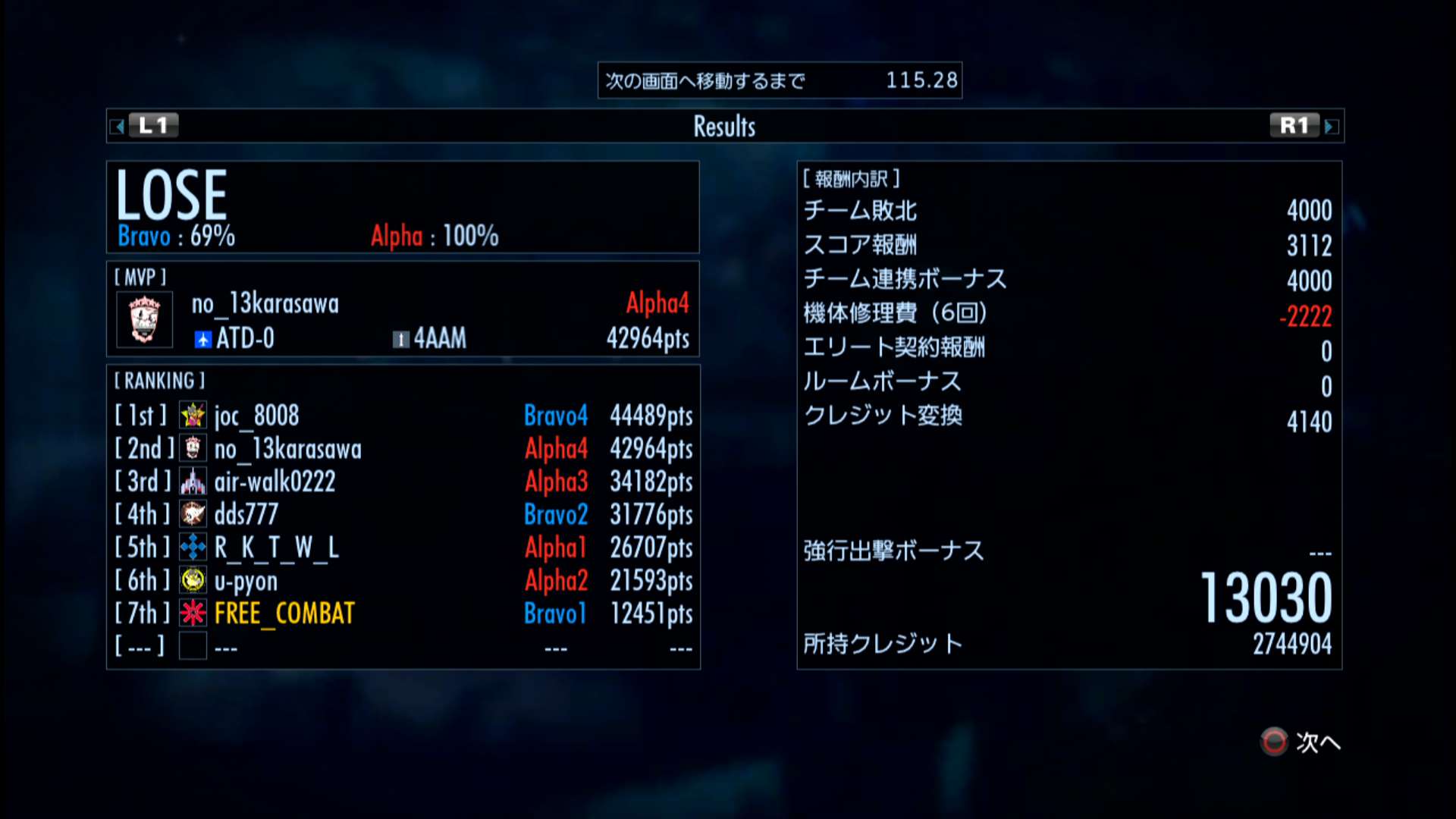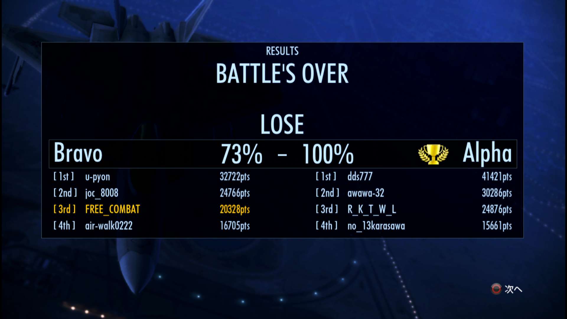 12451pts < うぐぐ、いやー6回も落とされて、落としたのが3。特にミラージュのair-walkが当たらない当たらい。そればかりか逆に落とされてるしorz