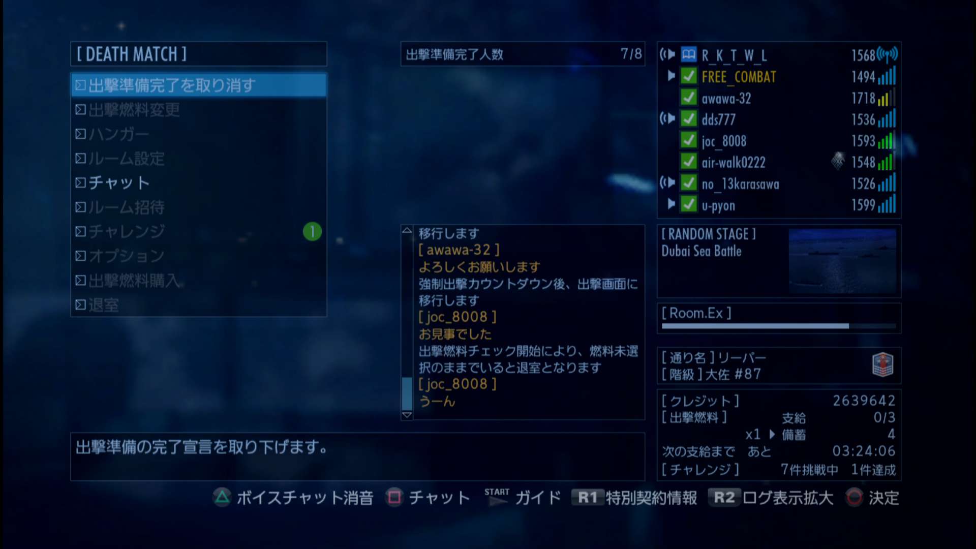 (2015/4/4, EMERGENCY SEA STRIKE, F-15 S/MTD Agile Eagle, Lv.11 & LAGM, Lv.5, TtlCst:1786) - 今回出撃回数:6(協同戦役:1、TDM:5)