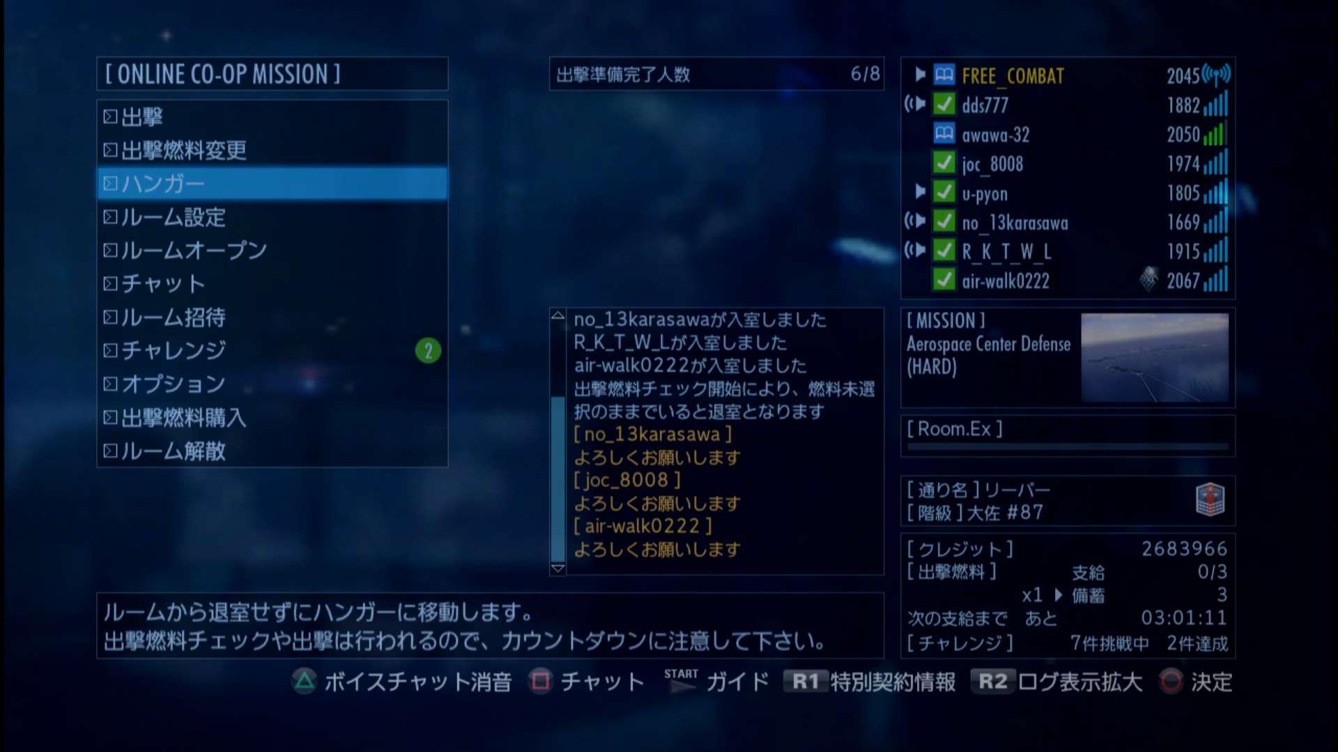せっかく8人で飛ぶんだから簡単なミッションじゃ面白くないので、ずばり一番難しそうなMAP、Aerospace Center Defense(HARD)だ。