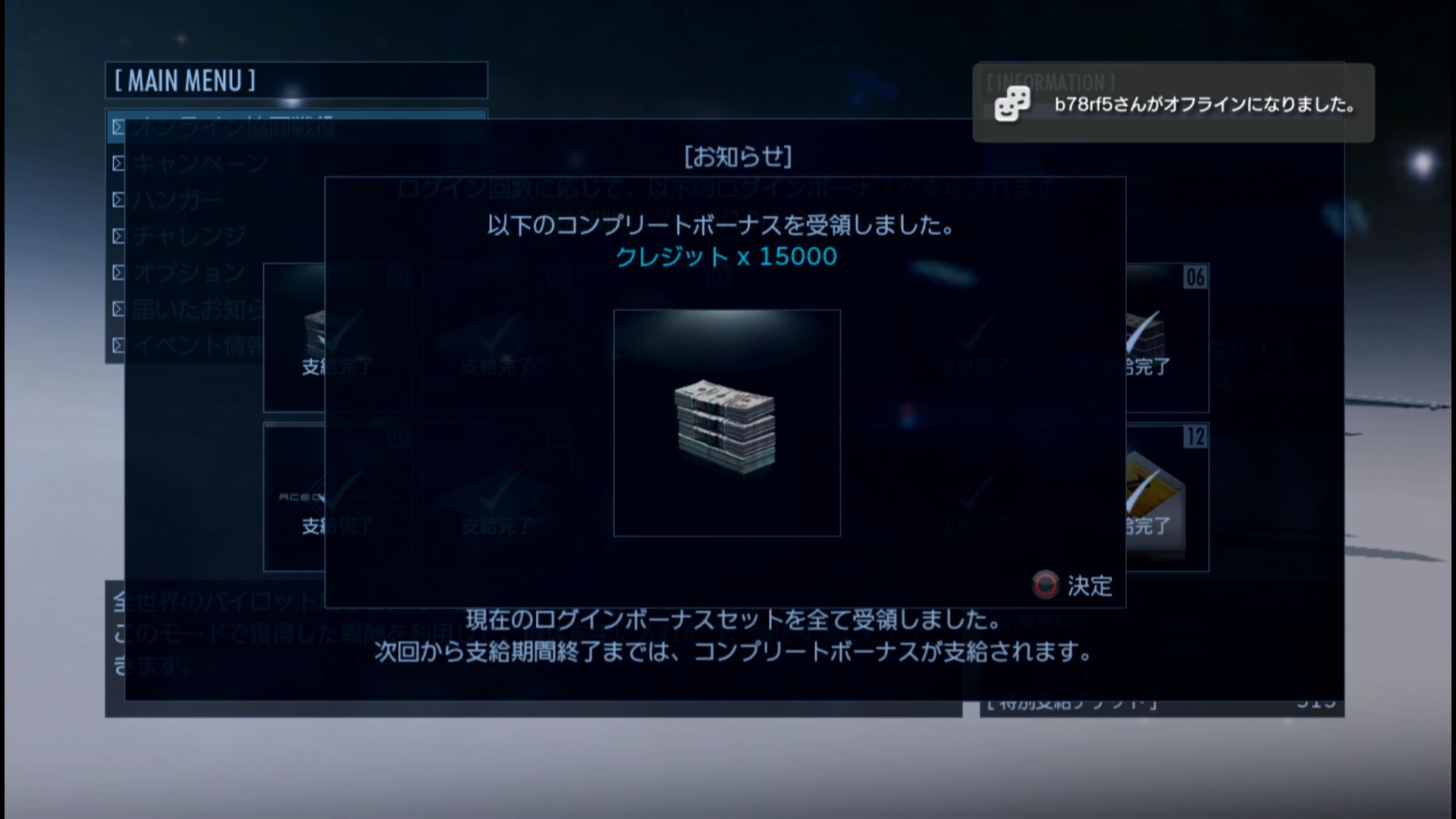 ■エースコンバットインフィニティからのお知らせ