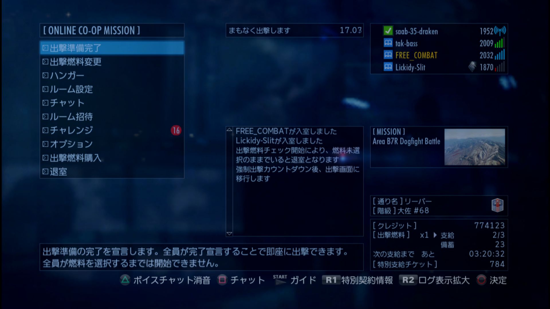 今日は協同のチャレンジ備蓄燃料取りもやらなきゃと早朝協同2回。夜のフレだらTDMはkatokke部屋だー