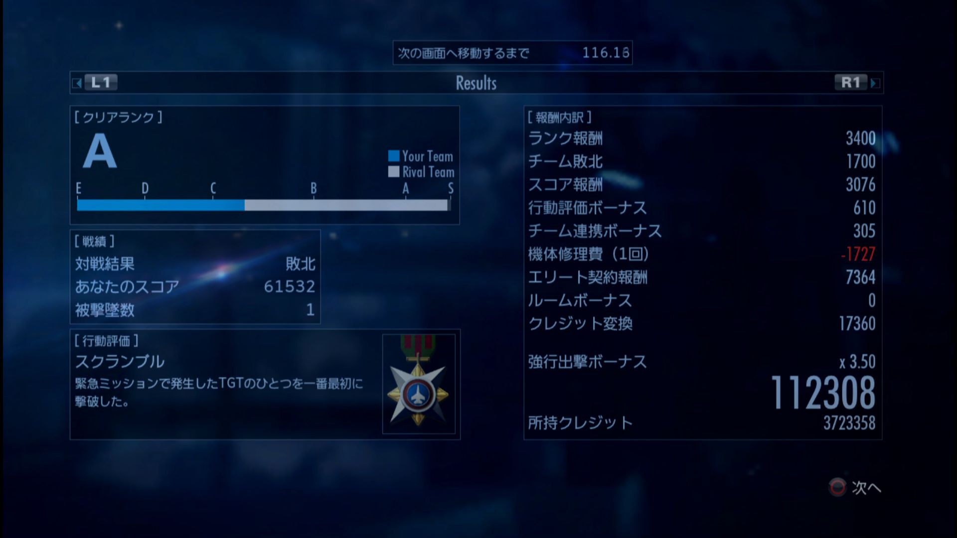 Weapons Base Assault(HARD)は難しいな。しかも今回はシャムロックのkatokkeさんとかぶりまくりでダメダメだったわ。