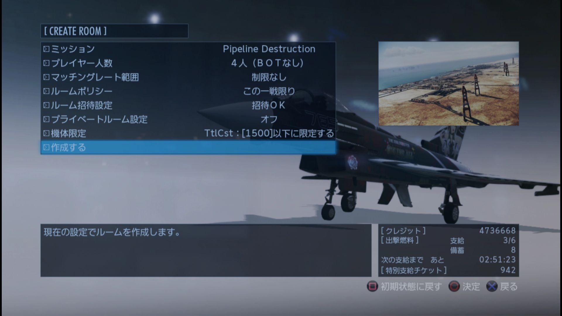 (Typhoonで出撃し、敵を累計150体以上撃破せよ)、備蓄燃料1