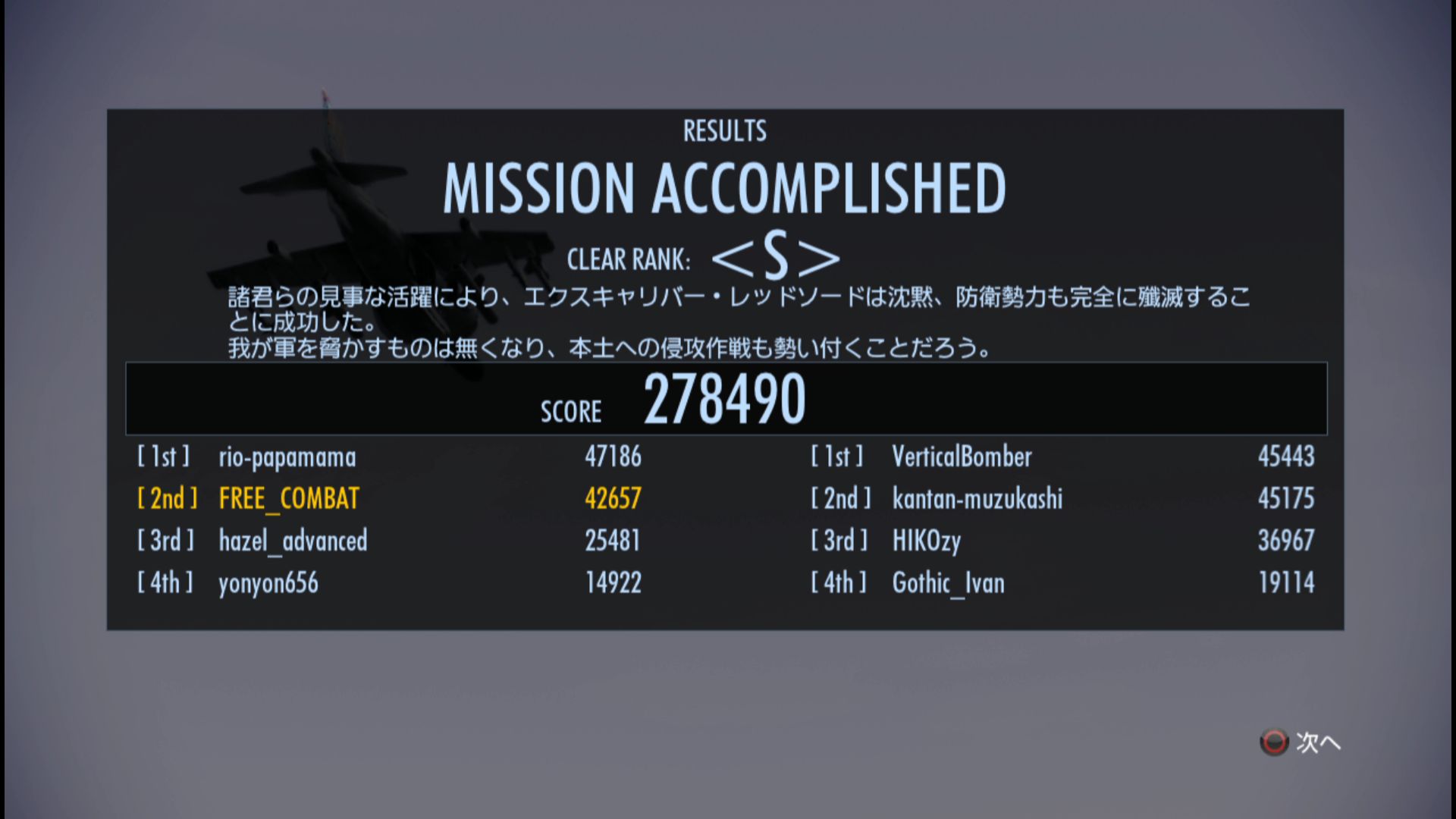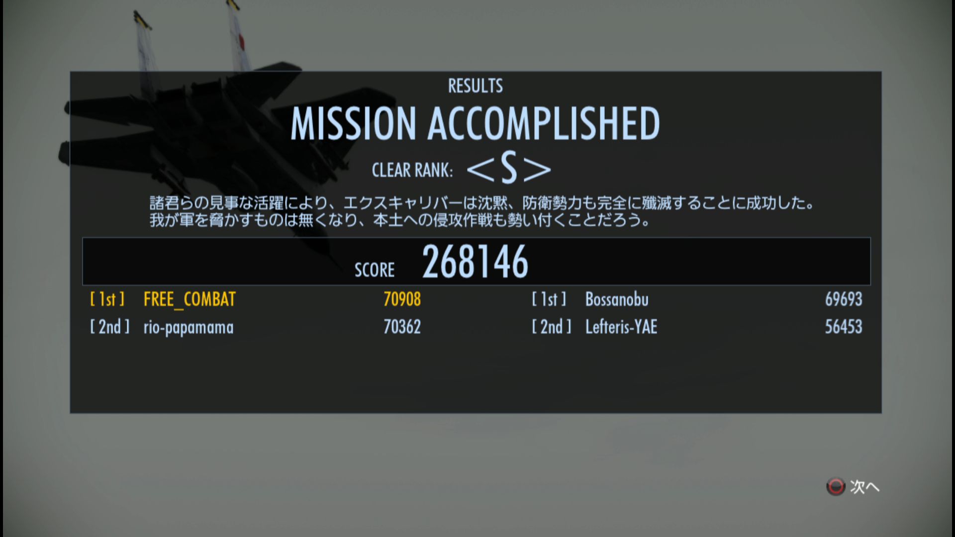 まぁ、下手なのでどこを飛んでも、強いなんて難しいので、自分の好きなミッションにさらに磨きを掛けて行こう思います(^^)/
