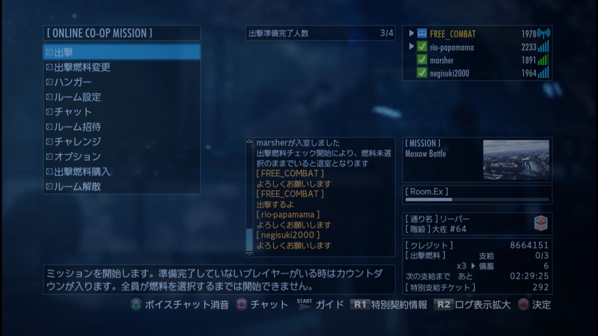 - 累計出撃回数:1851(協同戦役ミッション)
