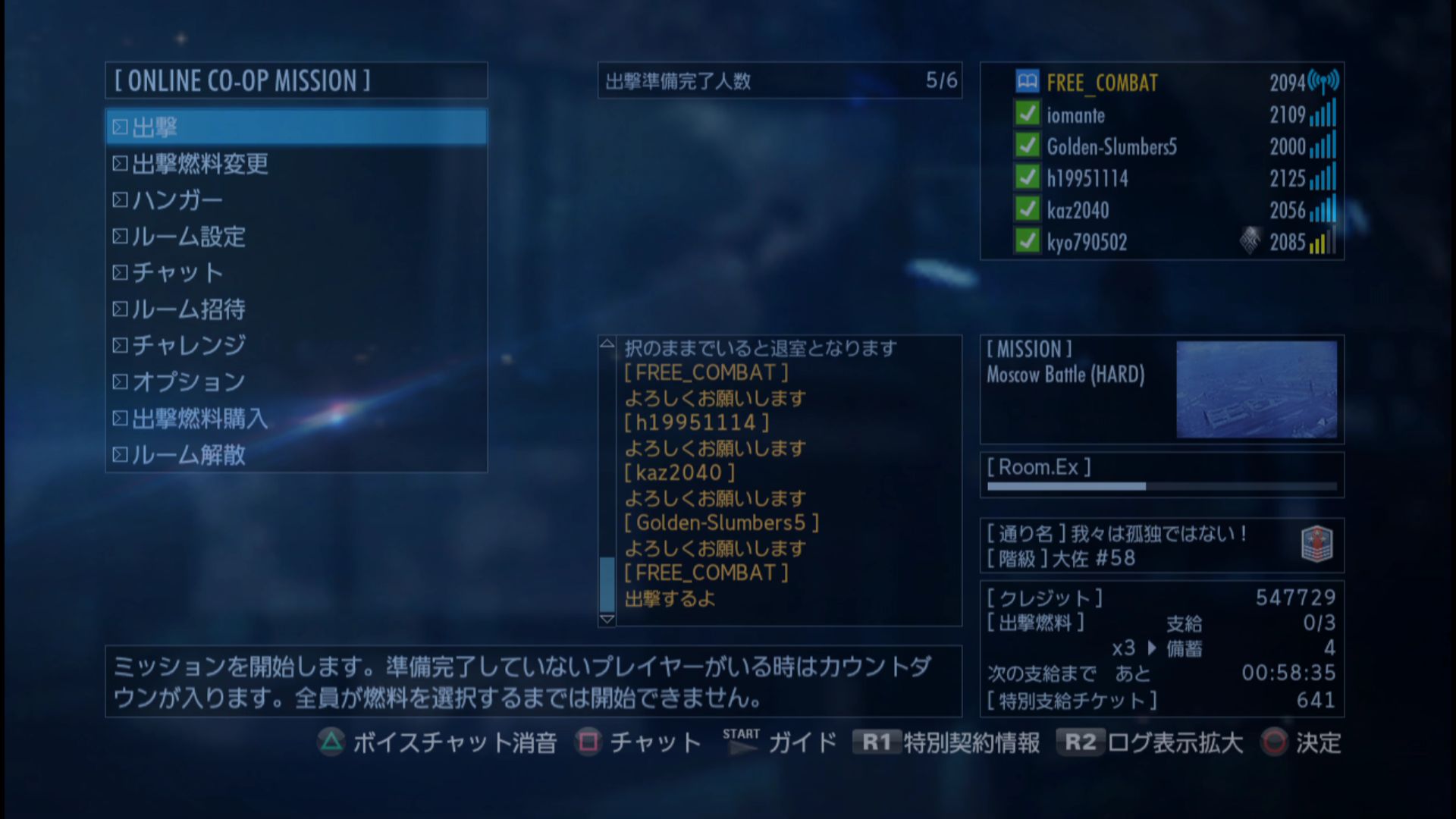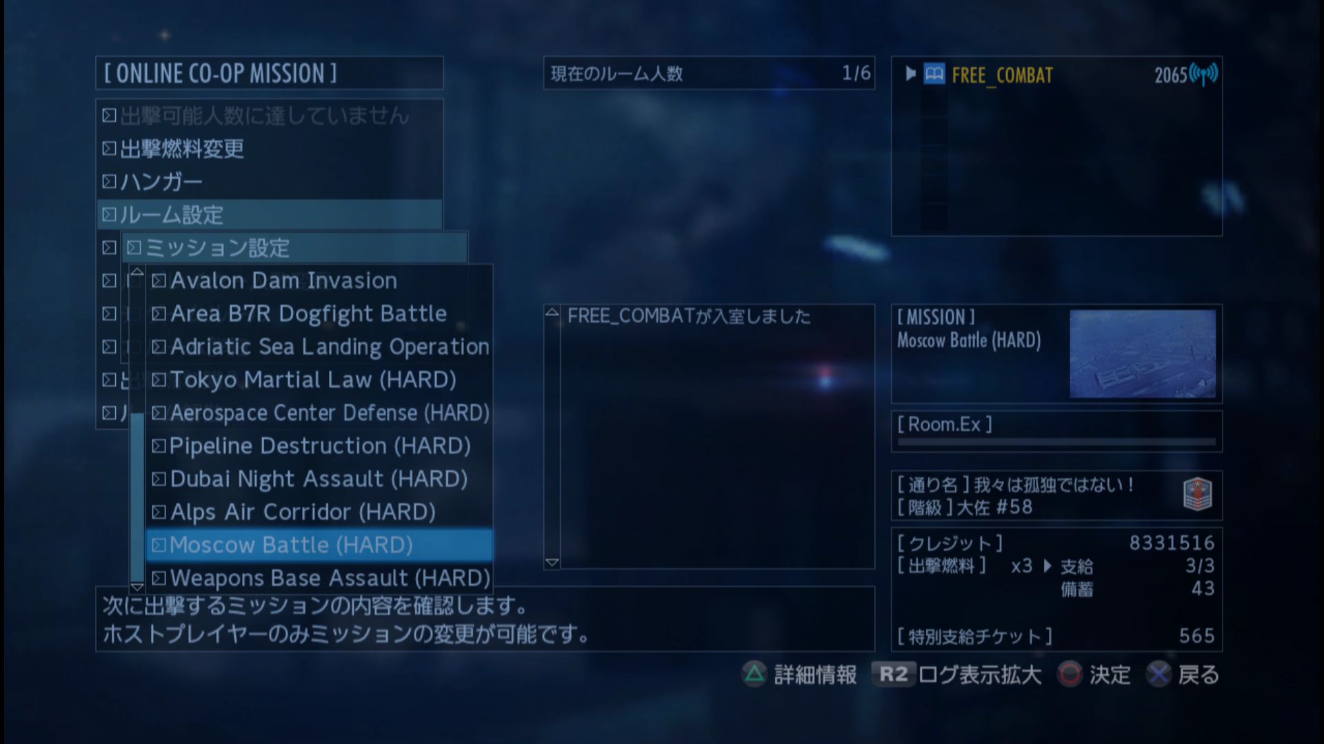 ミッションを、Moscow Battle(HARD)にセット