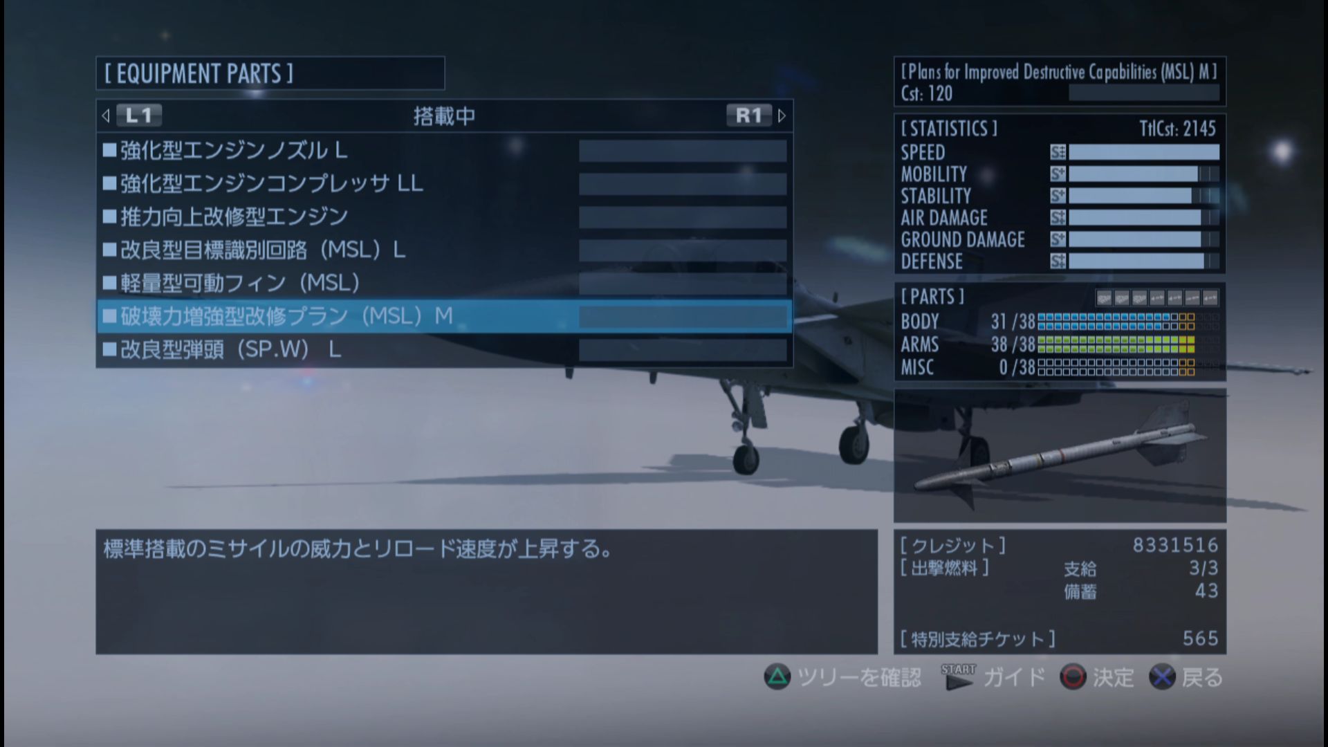 ってことで、ここは破壊力増強型改修プラン(MSL)Lを取りにいかずに、まずはF-15 S/MTDのレベルアップが先だな。