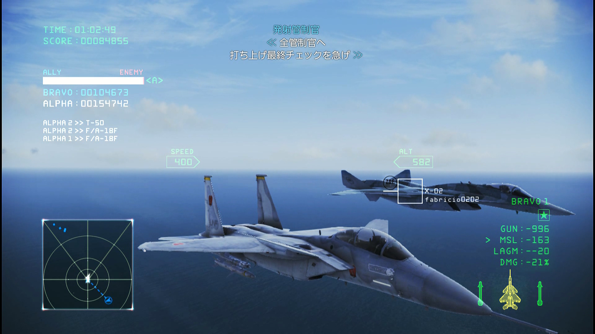 スタートでfabricioが右に行きそうだったので、直進して1タゲからいつものルートで入る、勢い乗せて中央の赤タゲをさらっていくが、両端にタゲが残ってるのを掃除しつつ対地は赤タゲ狙いの対空主体で稼がせてもらった。