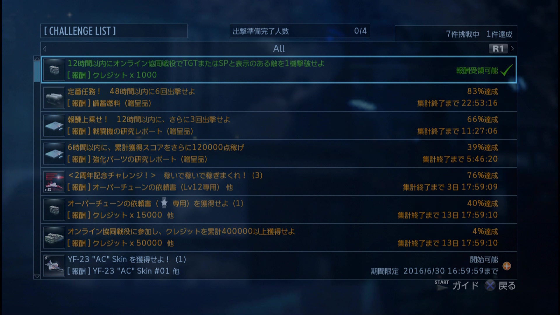 • 累計出撃回数:2451(協同戦役ミッション)