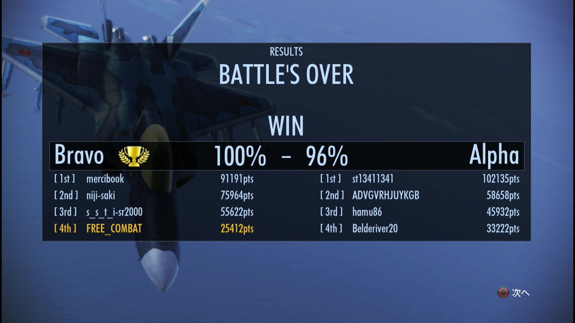 3. 相手の読みを外すために使ったF-35やラファール(通常機体です)が思った以上に活躍でき勝敗を問わず楽しめました。
