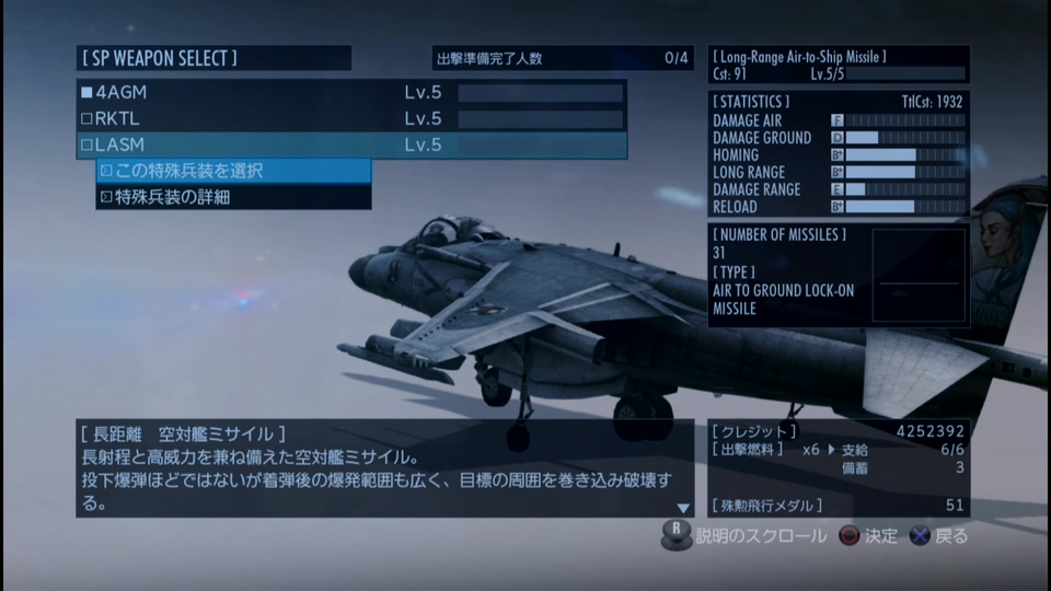 【A】AV-8B Aquarius, Lv.16 & LASM, Lv.5, TtlCst:1932 [X pKrLrpL X] ARMS, 32/33 - 開始燃料:支給燃料6,備蓄燃料3