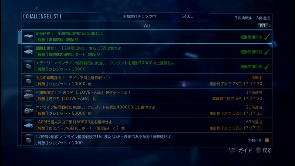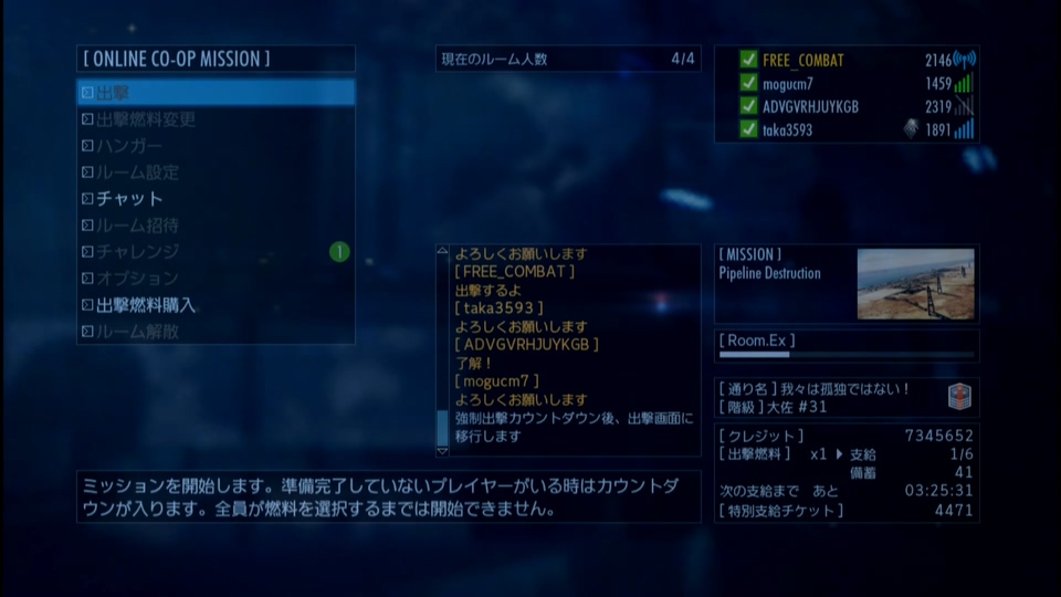 - 累計出撃回数:2817(協同戦役ミッション)