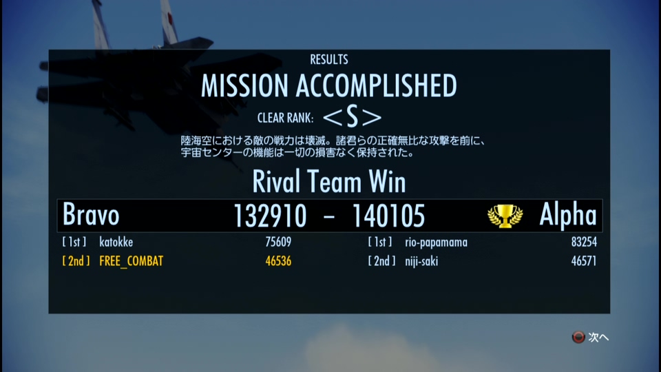 この二人の搭乗機体は、ガルーダ隊2番機 F-15E Shamrock に固定。二人ともカンスト機体だ。