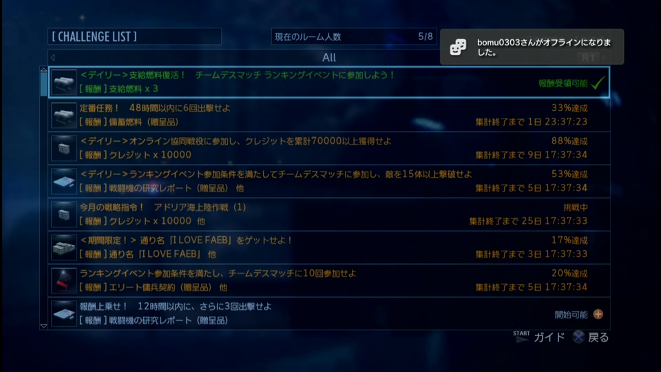 チャレンジで取った支給燃料3復活を実行