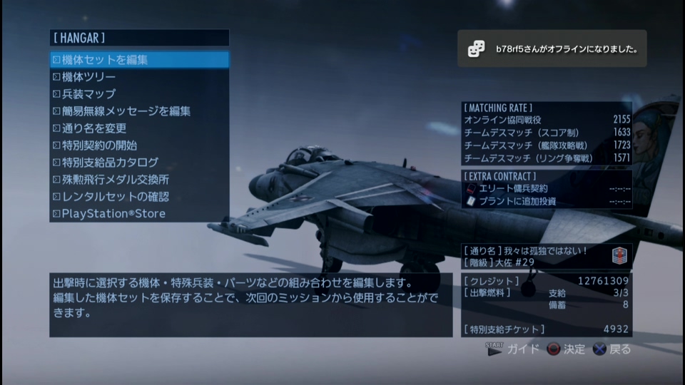 - 累計出撃回数:2894(協同戦役ミッション)