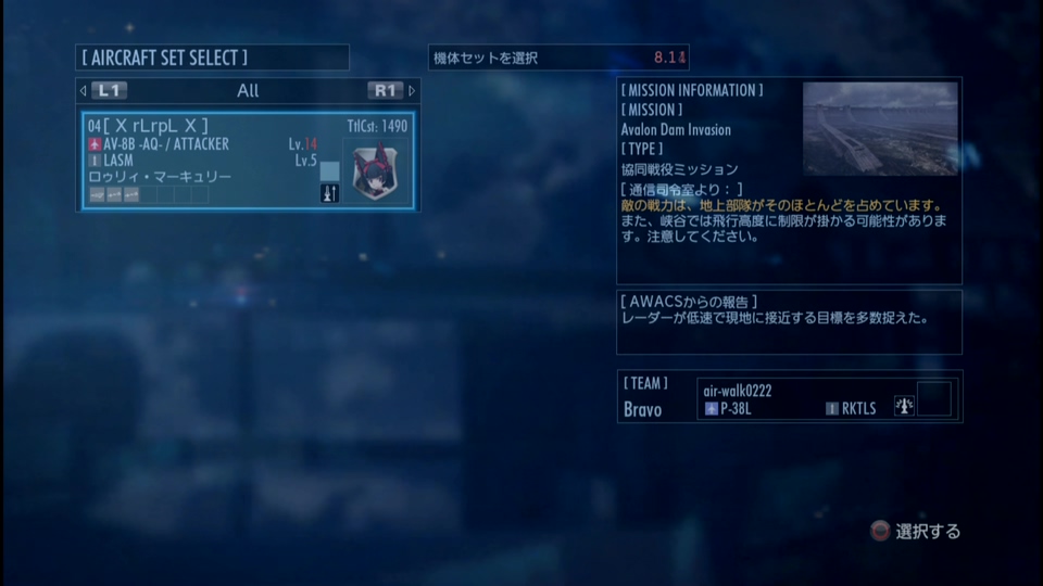 【A】AV-8B -Aquarius-, Lv.14 & LASM, Lv.5. TtlCst:1490 [X rLrpL X ] ARMS 27/37 - 開始燃料:支給燃料6,備蓄燃料57