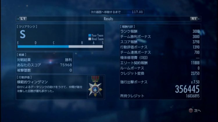 このため、純粋にクレジットを稼ぎたい場合は、スロット拡張をカンストした機体で飛ぶことだ。