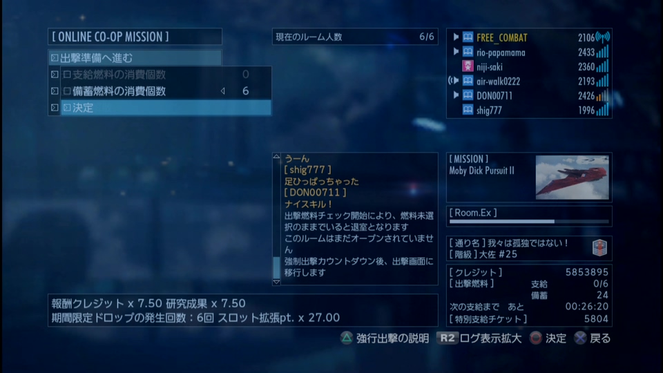 rioさんが暫くエースコンバットインフィニティをお休みするってことで、今晩は送別大パーティーだ。今回はルームのボイスチャット全部録れるようにしたったら、大雑談会になってもたー