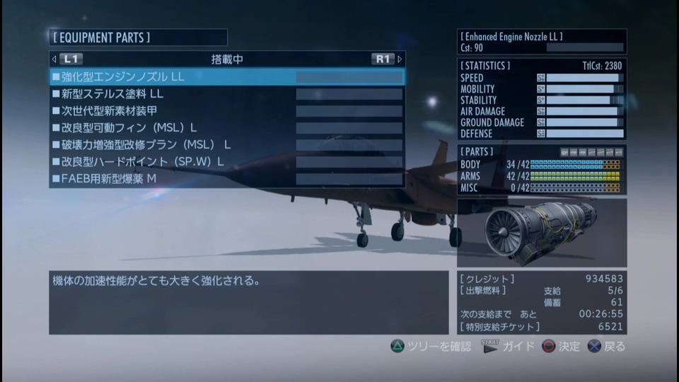 ARMSのパーツ詳細:スペース区切り毎に機関砲、通常ミサイル、SP.W、Xは強化なし。[ GUN MSL SP.W ]