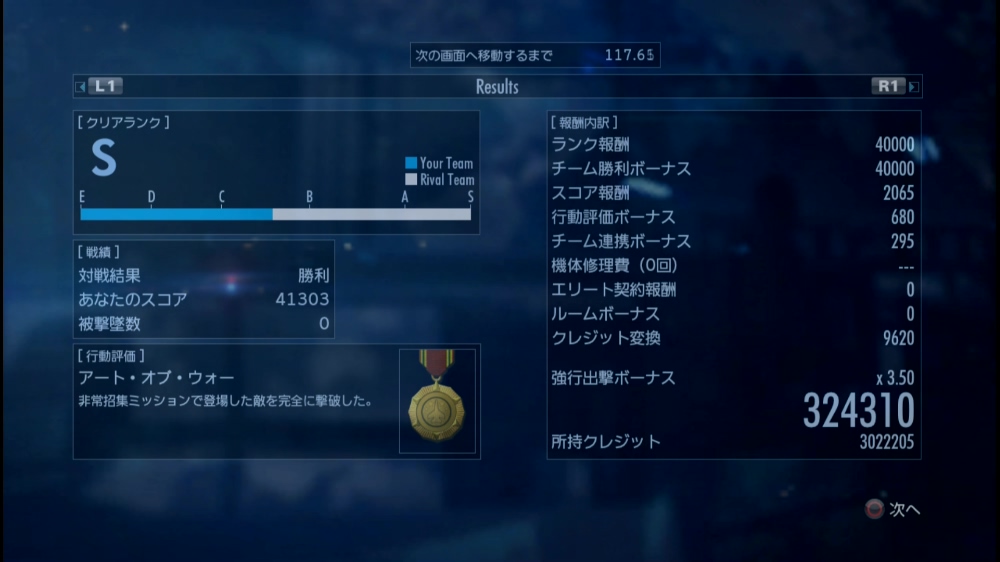 累計出撃回数:3225(協同戦役ミッション)