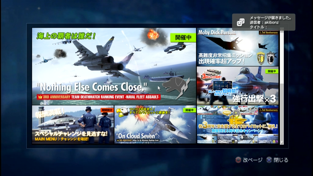 おっ、河野Pからエースコンバットインフィニティ3周年記念のご挨拶