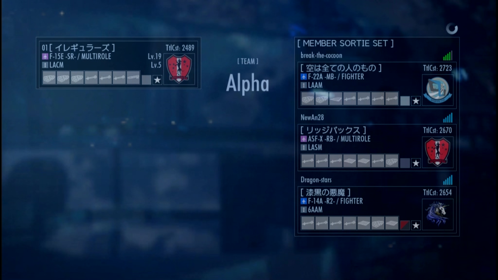 さっきハンガーでハリアーAQ見ていたのを忘れて機体選択をしないままで、この時はまだシャムロックを選んでると思っていた。