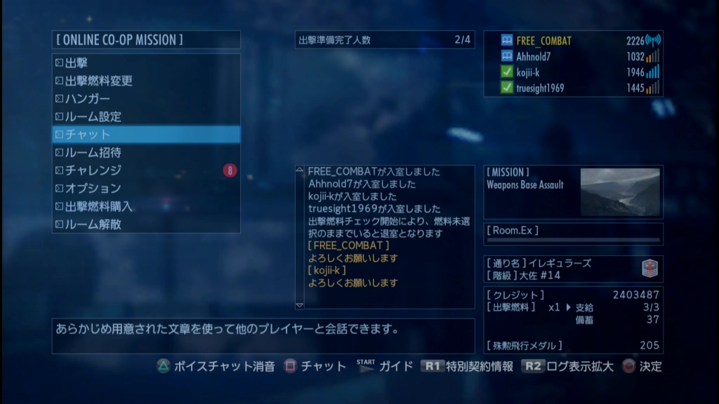 さて、今日もシャムロックで武器庫。このセッティングで飛ぶぞー