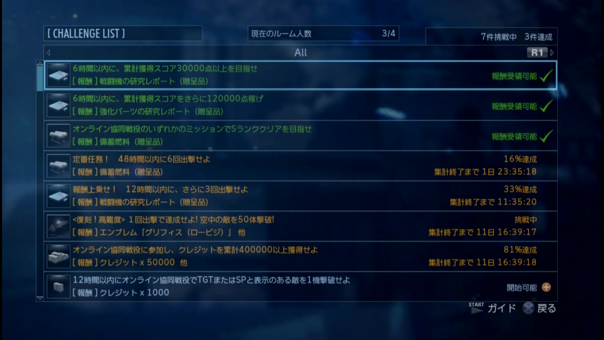 累計出撃回数:3493(協同戦役ミッション)
