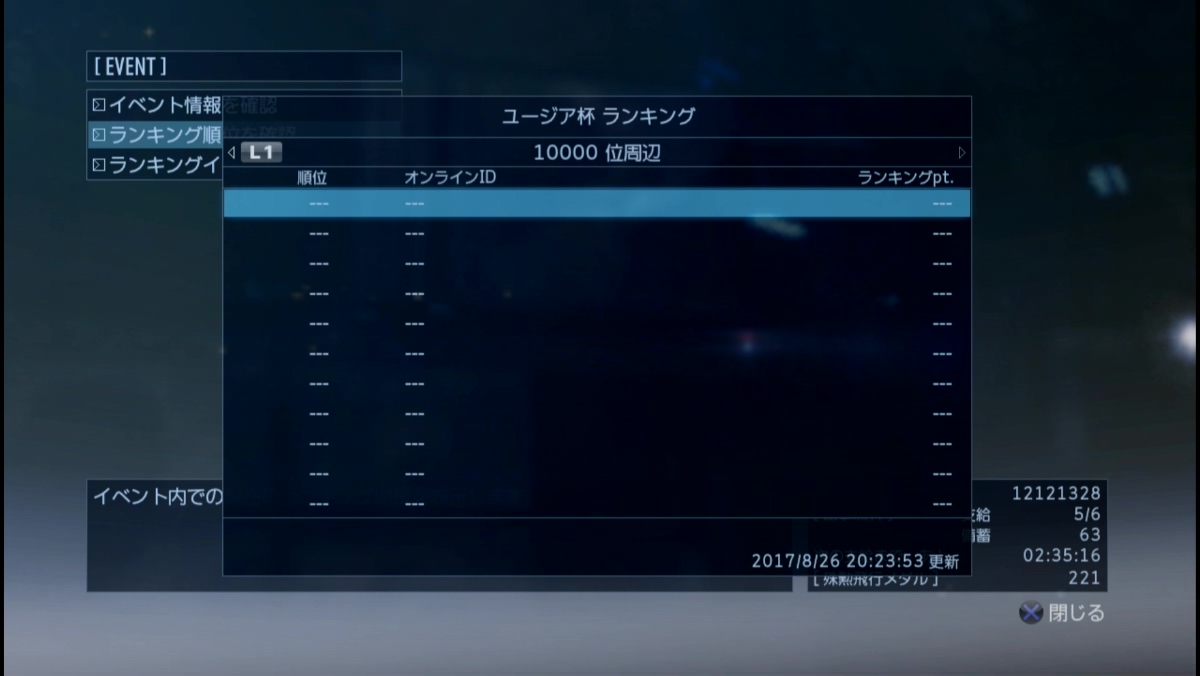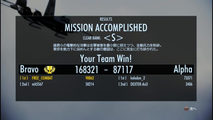 レート2000以上の方は競い合う相手がいなければコンスタントに10万点以上の点数を取れる腕と機体を持っていると思ってください。