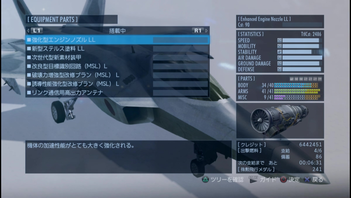 ARMSのパーツ詳細:スペース区切り毎に機関砲、通常ミサイル、SP.W、Xは強化なし。[ GUN MSL SP.W ]