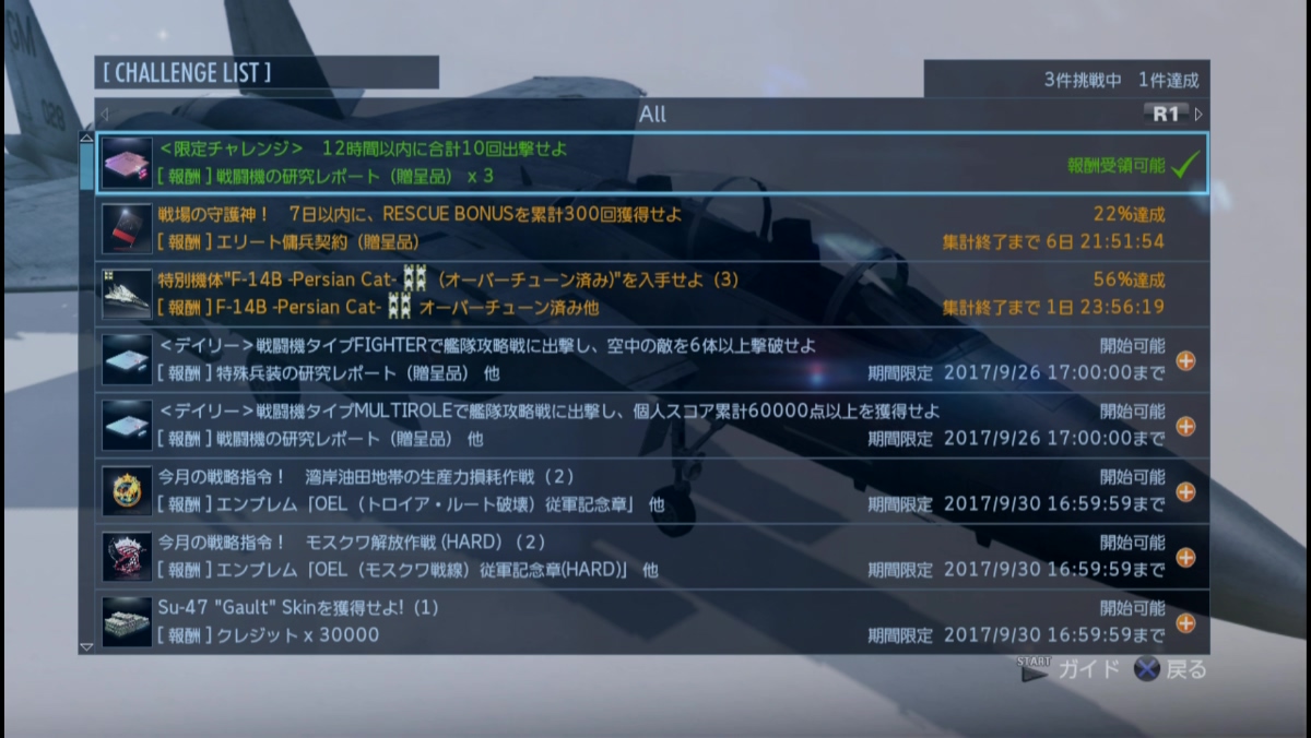 F-14B -Persian Cat- ★★★★(オーバーチューン済)を入手せよ(3)。スコア200万点以上獲得せよ。