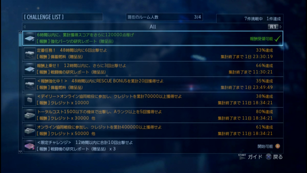 累計出撃回数:3594(協同戦役ミッション)