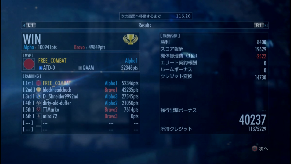 オレ【F】ATD-0, Lv.19 & QAAM, Lv.5, TtlCst:2412 [X pLsMhLshL X ] ARMS, 40/41