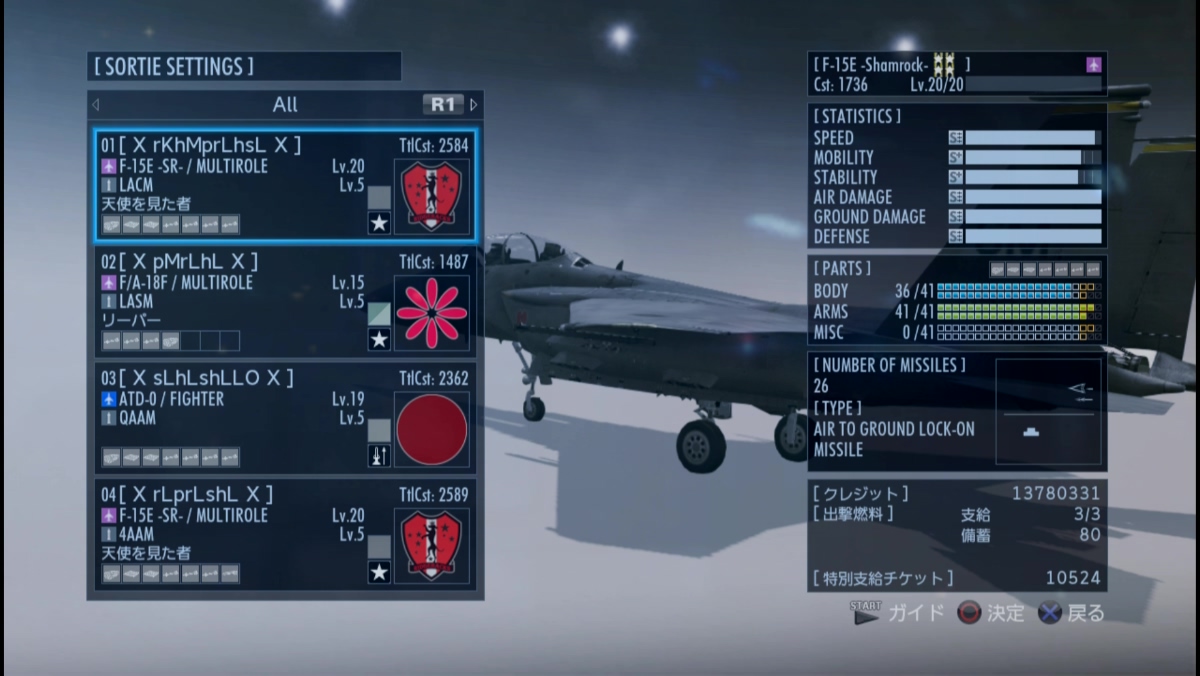 オレ【SR】F-15E Shamrock, Lv.20 & LACM, Lv.5, TtlCst:2584 [X rKhMprLshL X] ARMS, 41/41