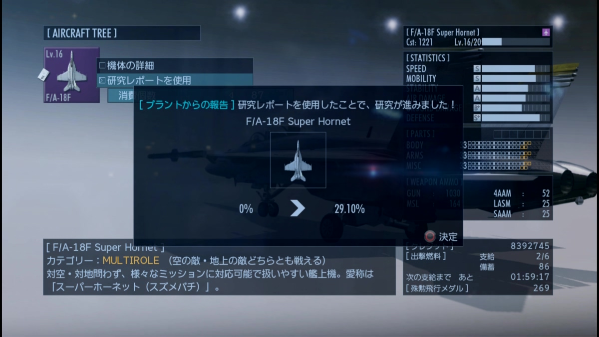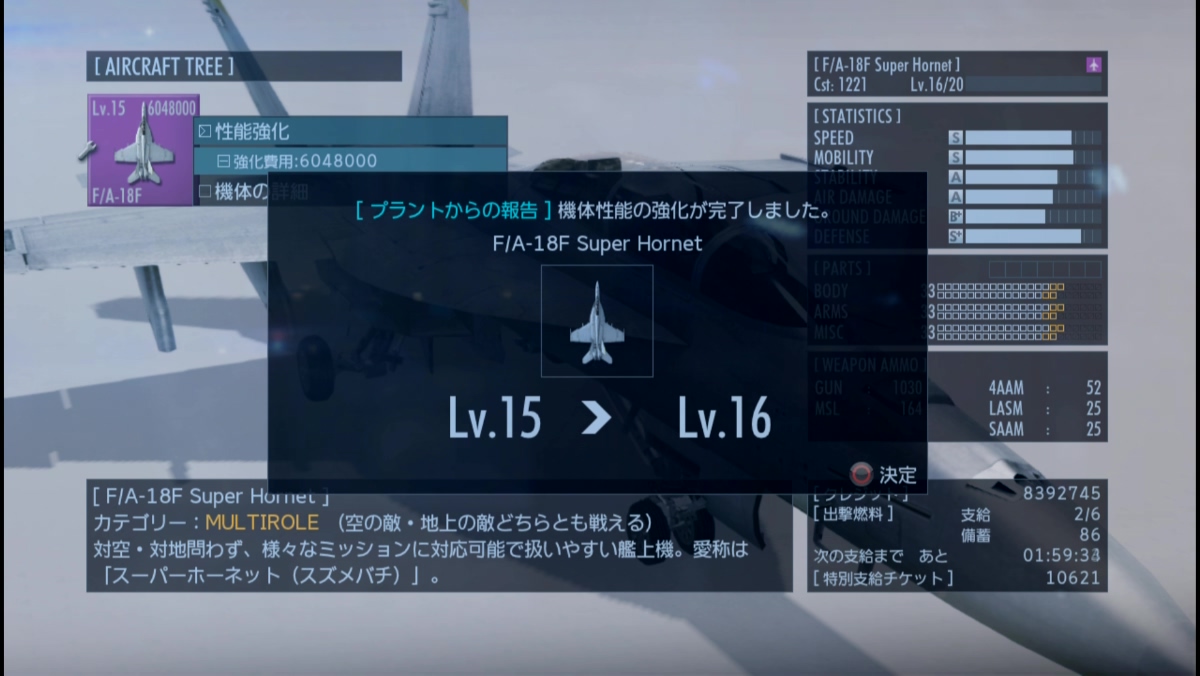 F/A-18F スーパーホーネット(JK)は今Lv.15