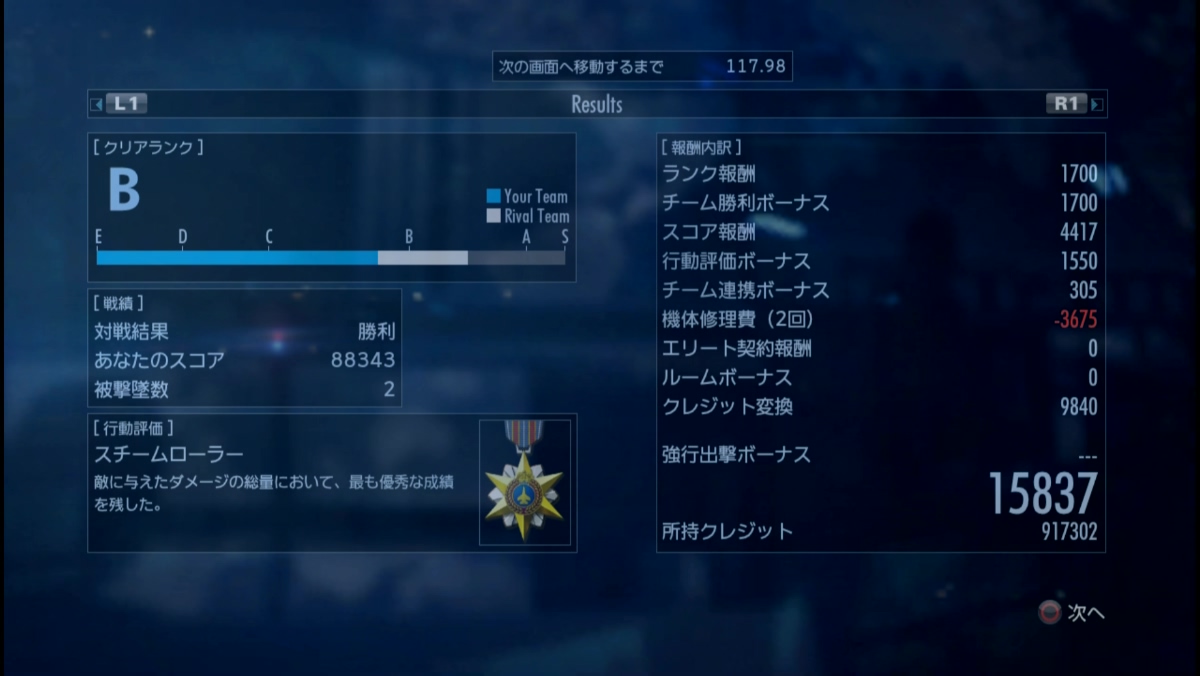 11月2回目のリングTDMエリプラはLv13ファントムのスロット拡張と機体開発資金を稼ぐことがでぎました。 順位:106位 レート:1858 現在所持クレジット:2500万