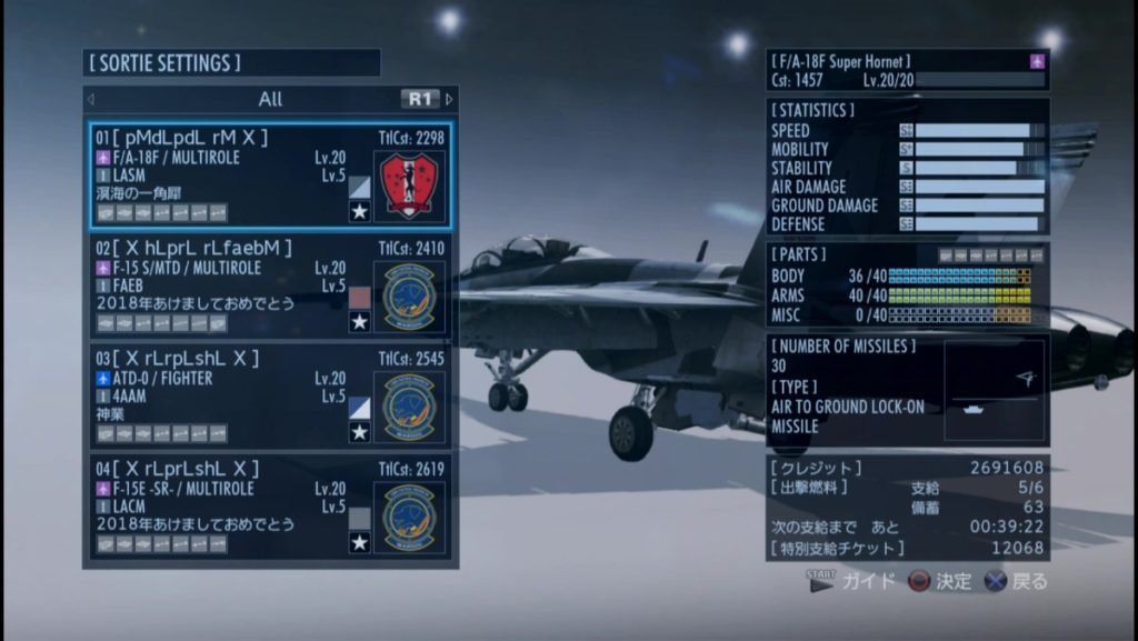 オレ【JKつばさ】F/A-18F Super Hornet, Lv.20 & LASM, Lv.5, TtlCst:2298 [ X hKrMprLshL X ] ARMS, 40/40