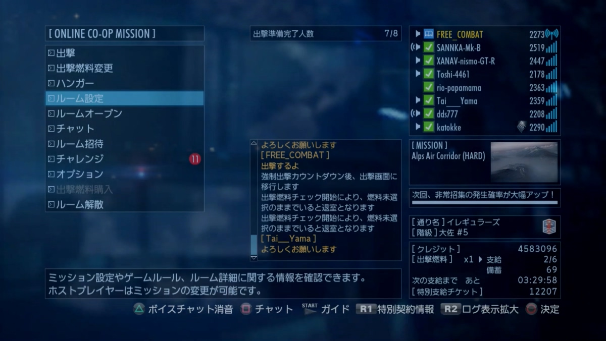 よし、エースコンバットインフィニティ出撃1000日記念、出撃ルーム作成