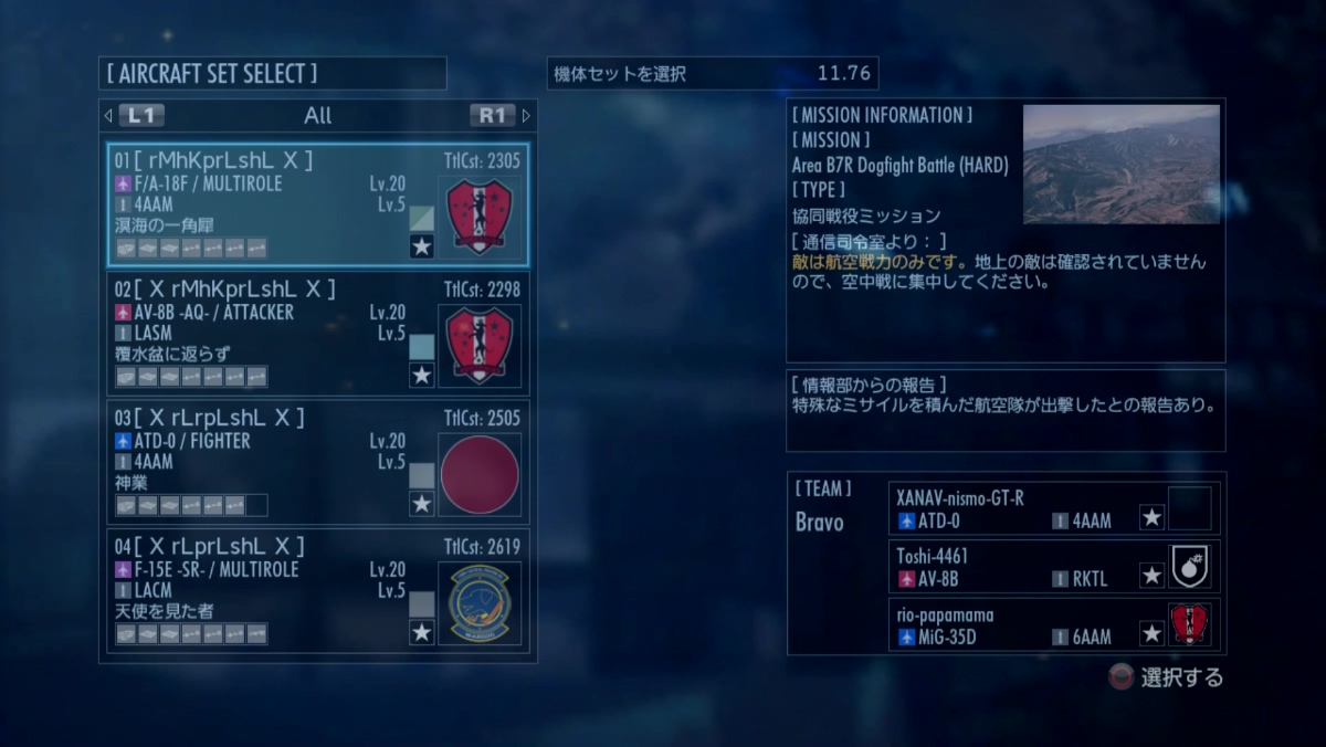 マルチ:F-15E -SR- LACM 4AGM F-15E -TM- 4AGM (主に対空が難しくない機体で、4AGMやLASMなど使える機体)